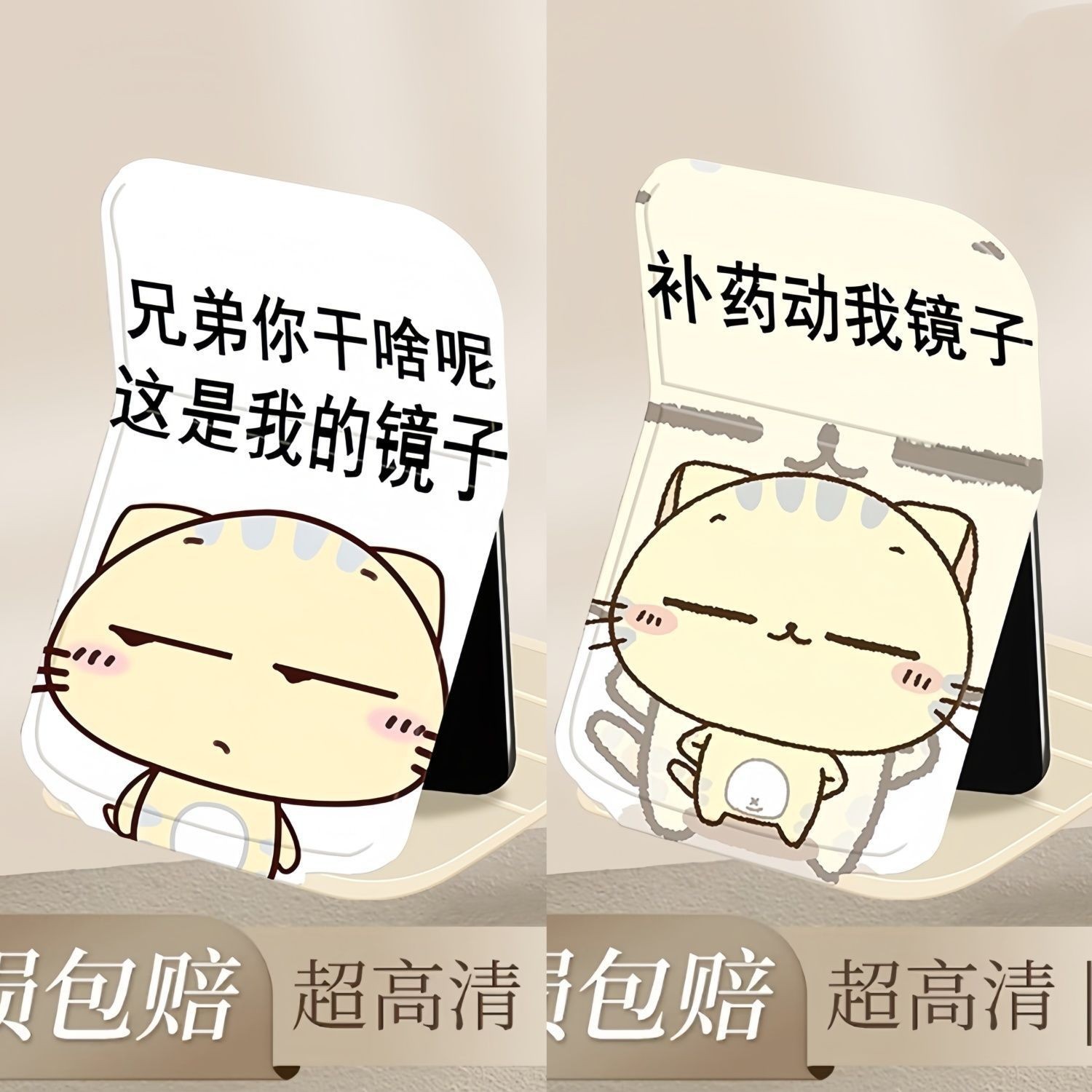 怠惰な羊さんのかわいい折りたたみ式携帯用化粧鏡、旅行用、革製小型鏡、学生寮のデスクトップに軽く置ける