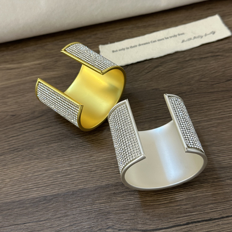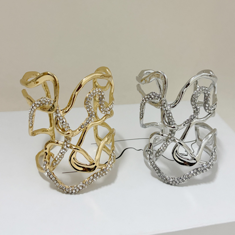 欧美时尚重工复古闪钻拼接交叉不规则线条手镯轻奢高级感开口手环