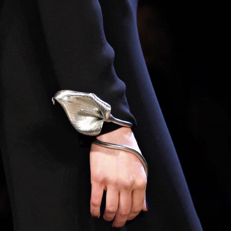 欧美复古夸张走秀个性肌理红掌花朵绕圈弹力手镯轻奢高级感手环潮
