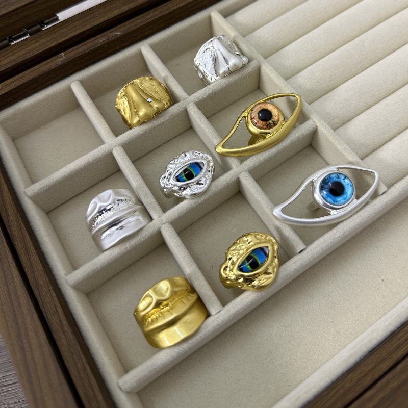欧美复古轻奢高级感五官系列眼睛耳朵方形戒指个性时尚气质指环潮