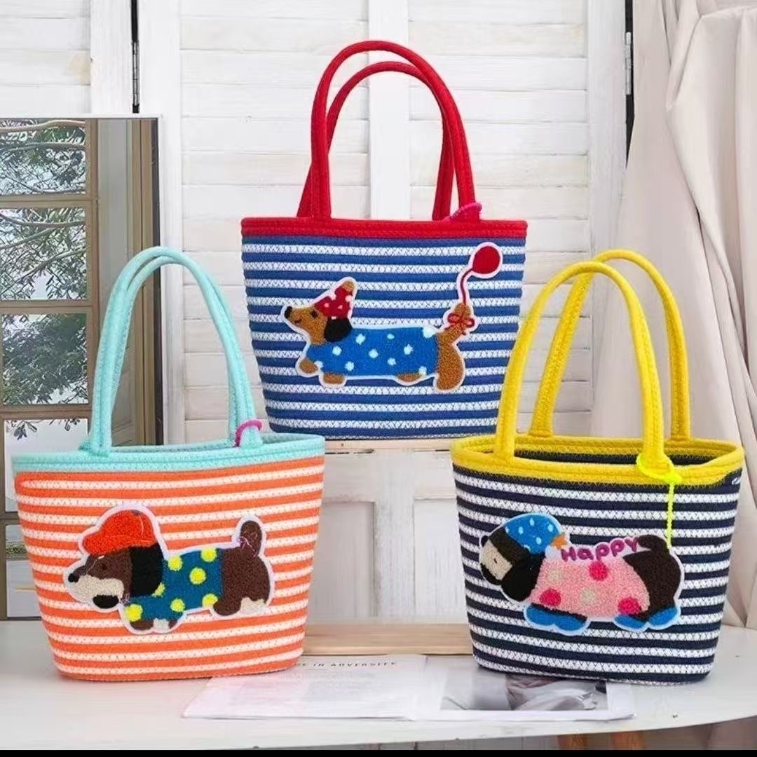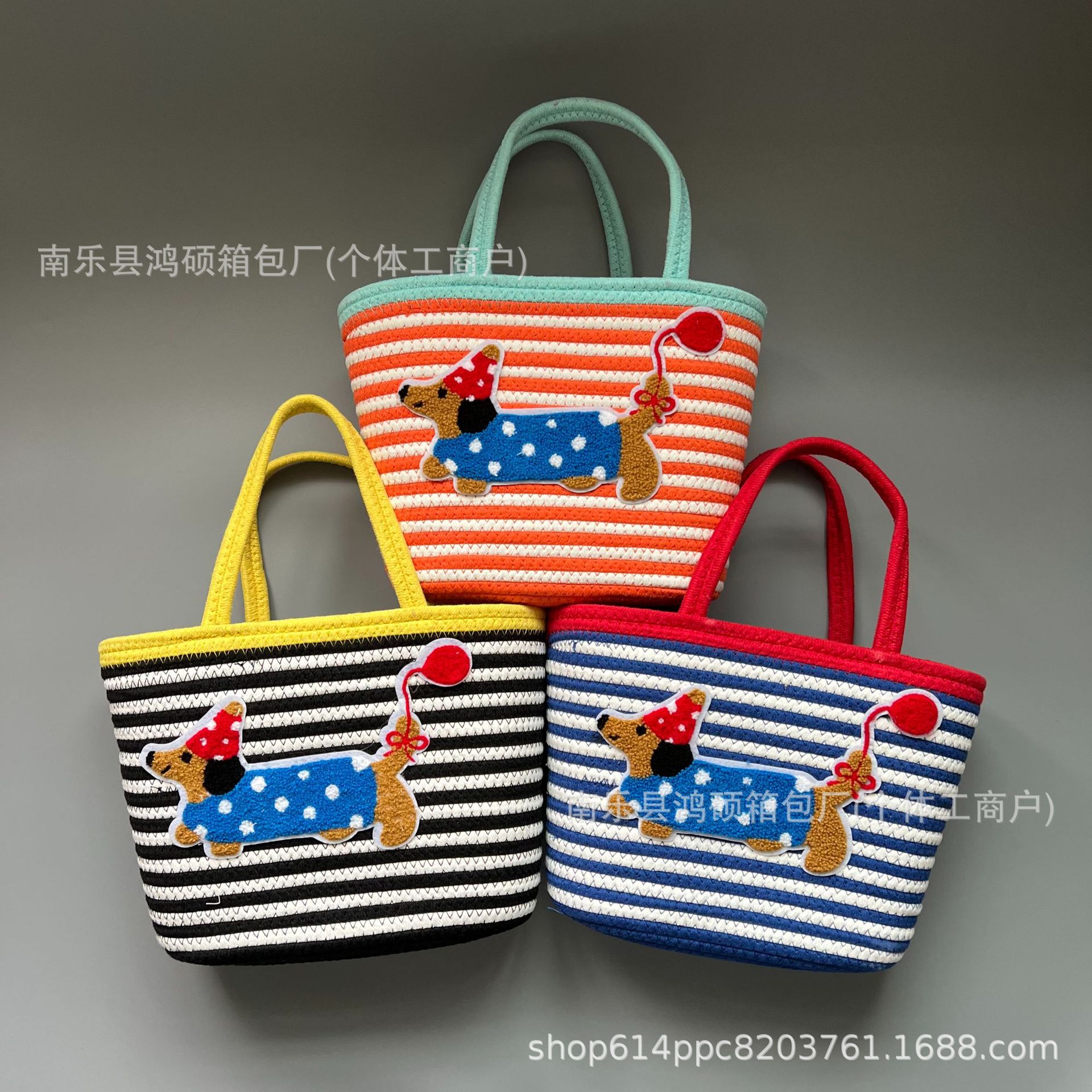 腊肠狗编织包水桶包潮撞色棉绳编织小狗单肩包大容量托特包伴手礼