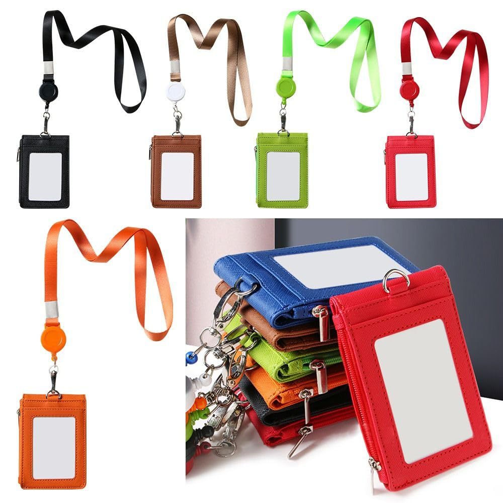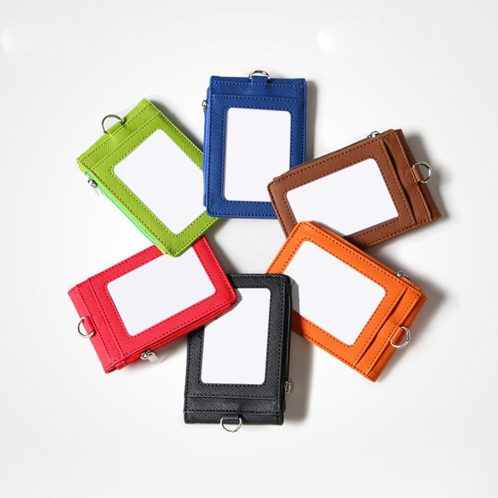 Amazon レザー クロスパターン ワークカード ID カードホルダー 通勤用 ストラップ付き バスカード アクセスカード カードバッグ