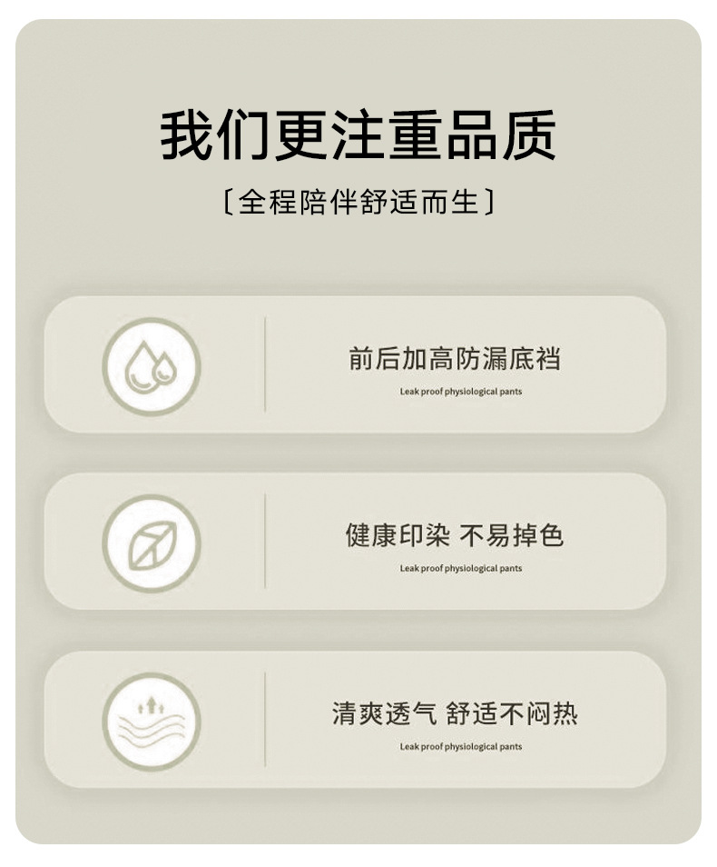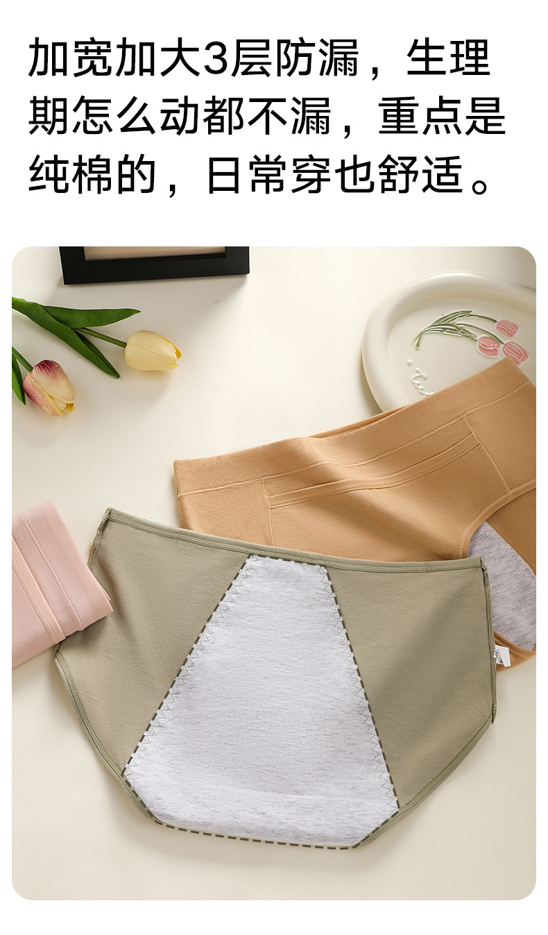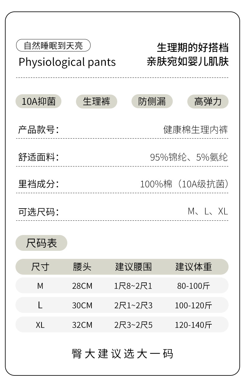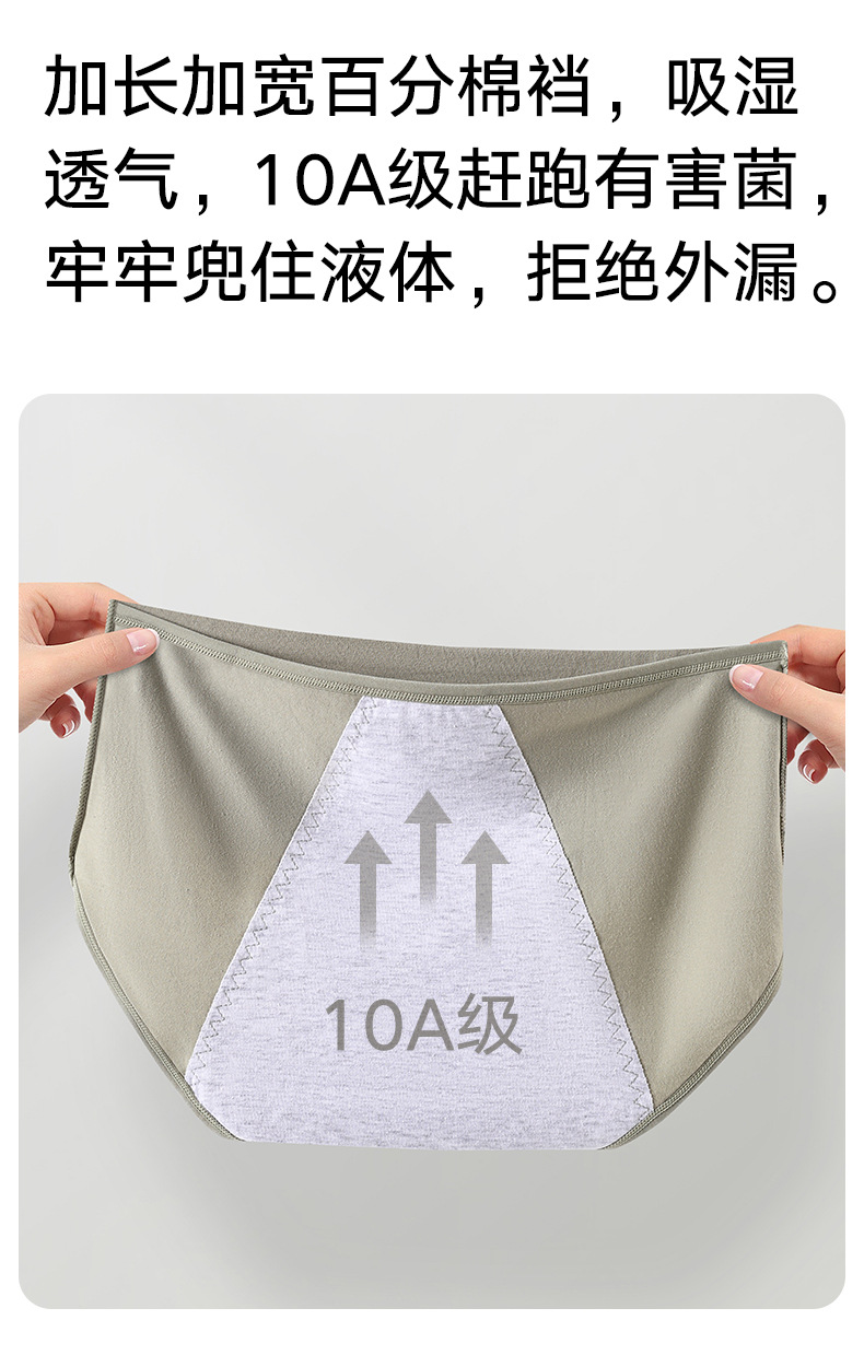 纯棉内裤女士经期防漏生理裤中高腰10A全棉抑菌内裆加宽大码三角