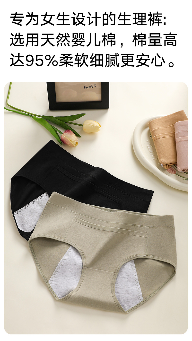 高腰生理期下着女性純綿抗菌月経ズボン少女生理期防漏叔母純綿女性三角ズボン