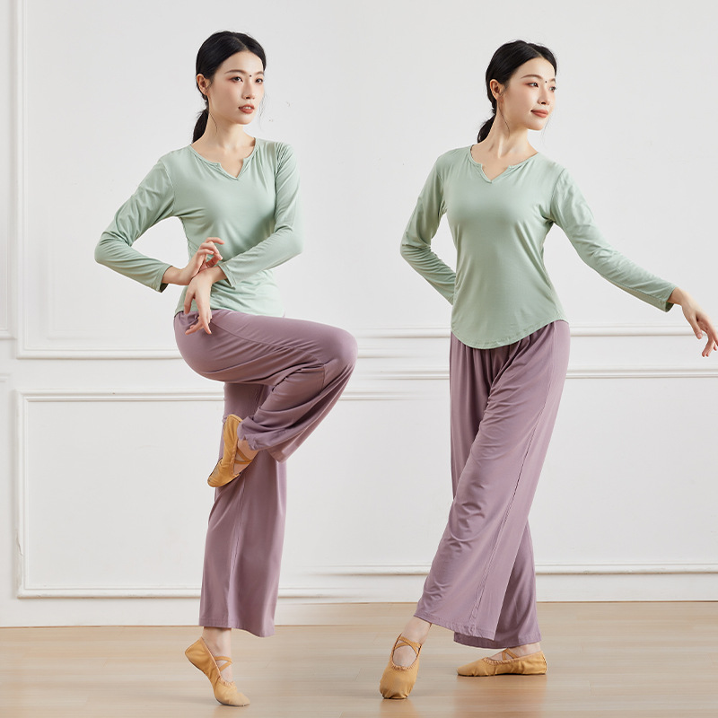 新しい中国舞踊ダンス用ストレートワイドレッグパンツセット、ダンスウェア、大人用モダンダンス練習着、女性用ボディスーツ