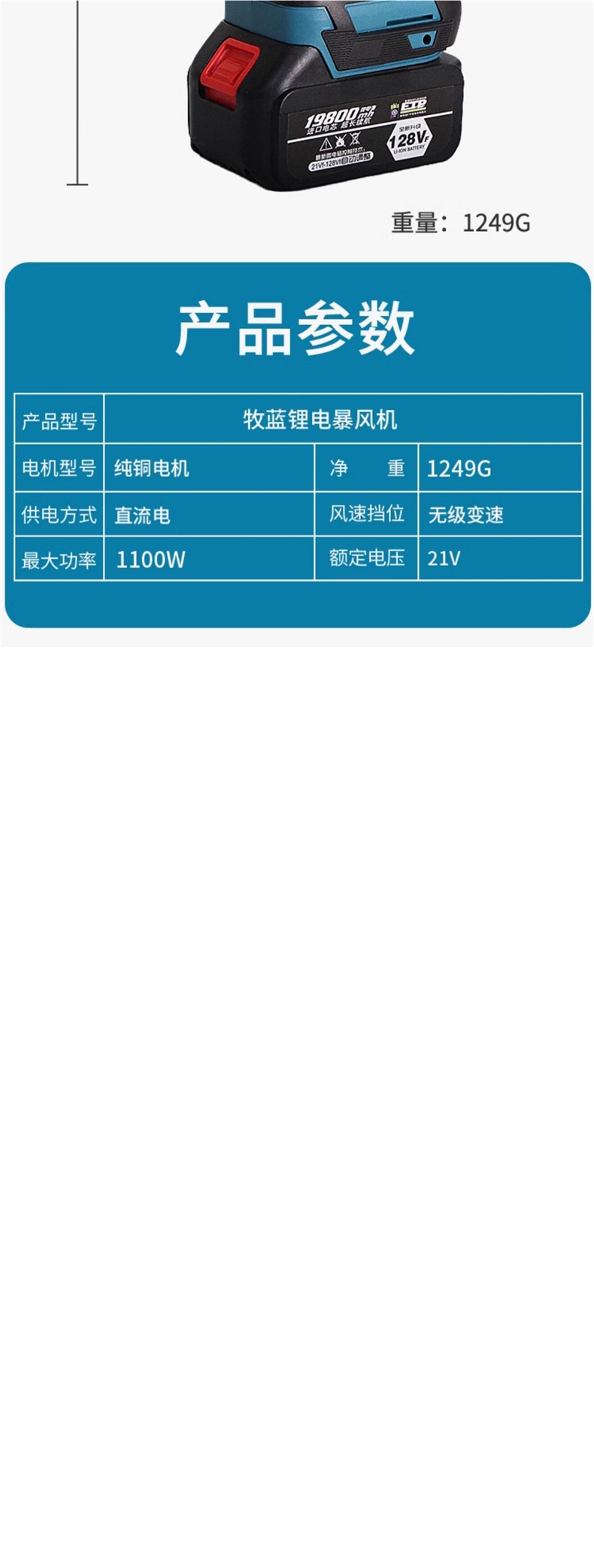 ドイツ含道暴力タービンファン高出力リチウム電気暴風機ドライヤー工業小型清灰除八極
