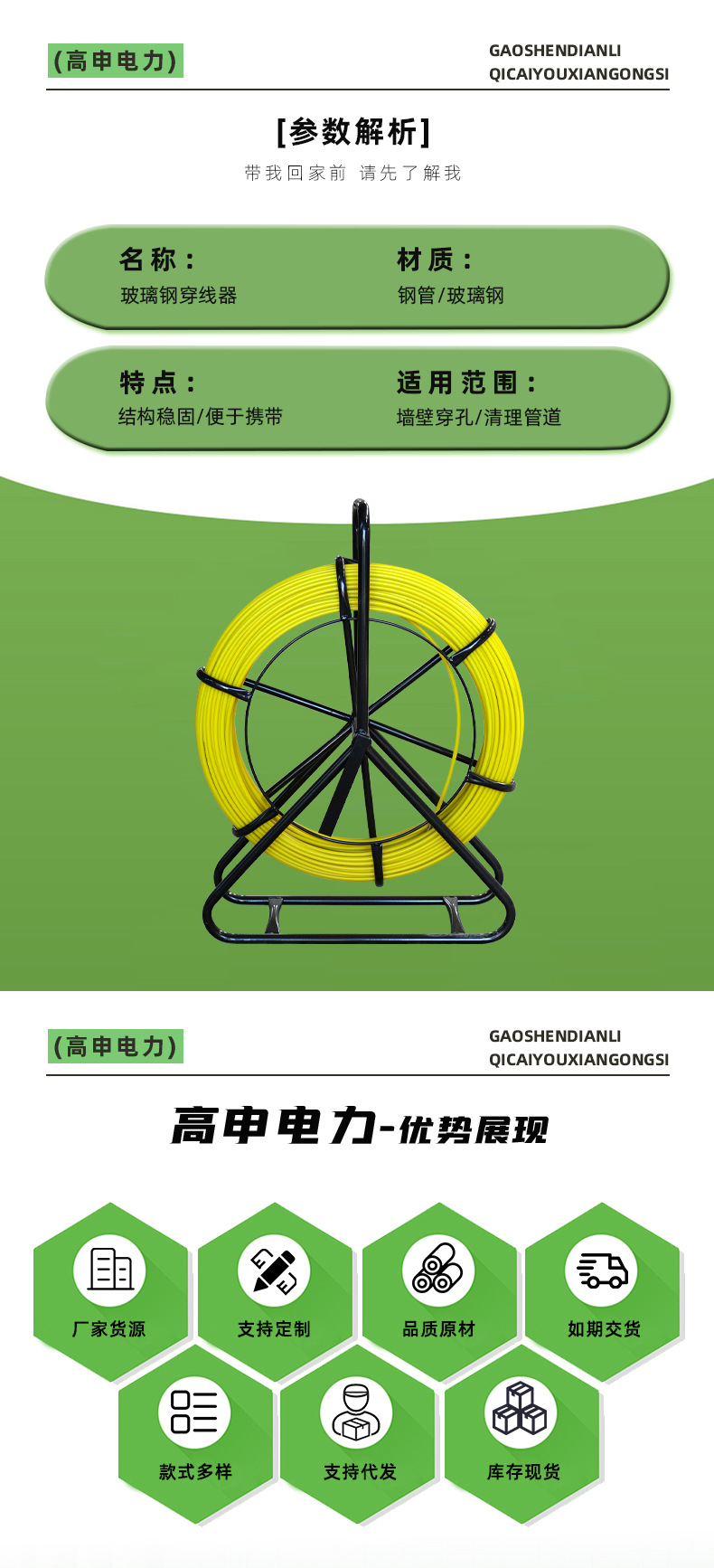 电工电缆牵引器拉线器电力施工穿线器玻璃钢穿孔器引线器管道疏通