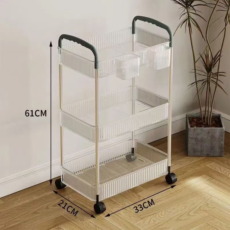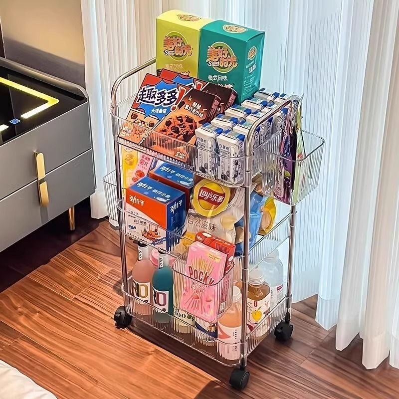 透明トロリー収納ラック浴室ベッドサイドスナック寝室床置き多層モバイル化粧品収納送料無料