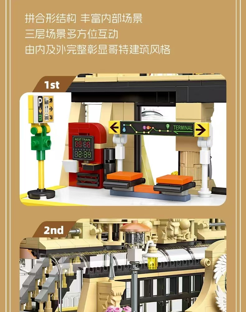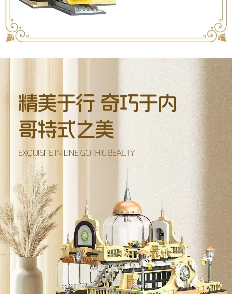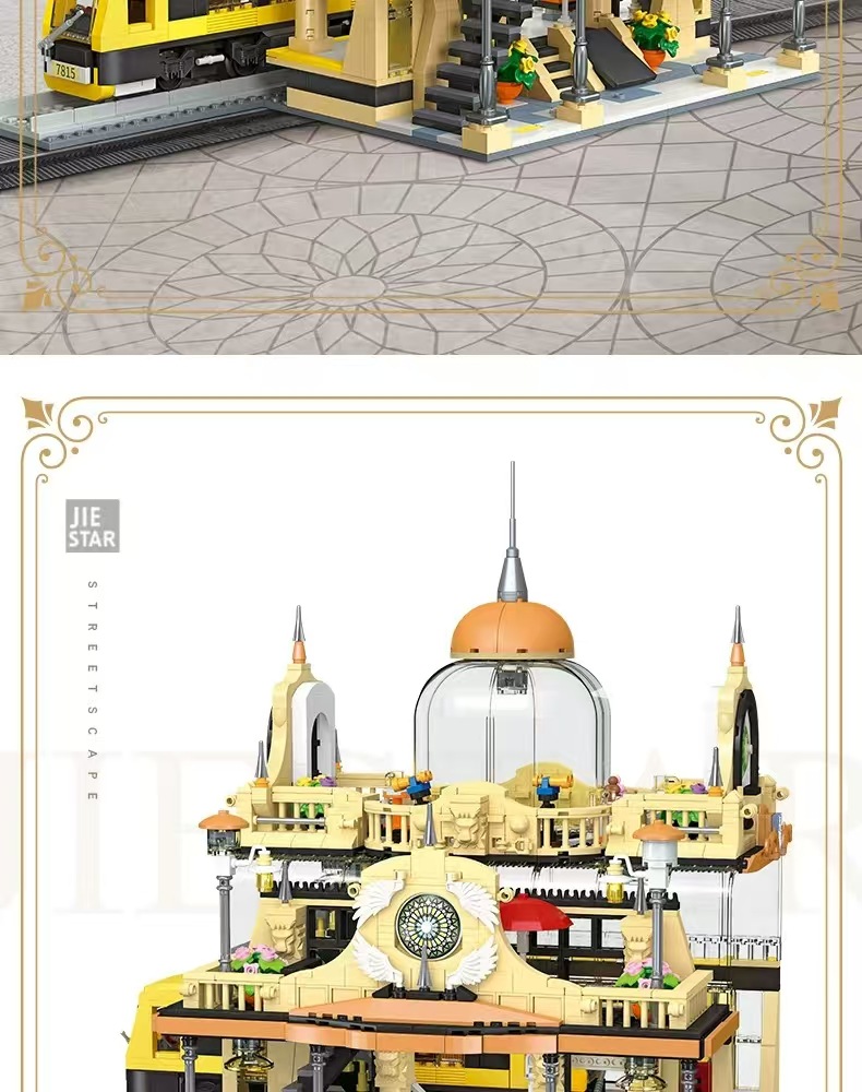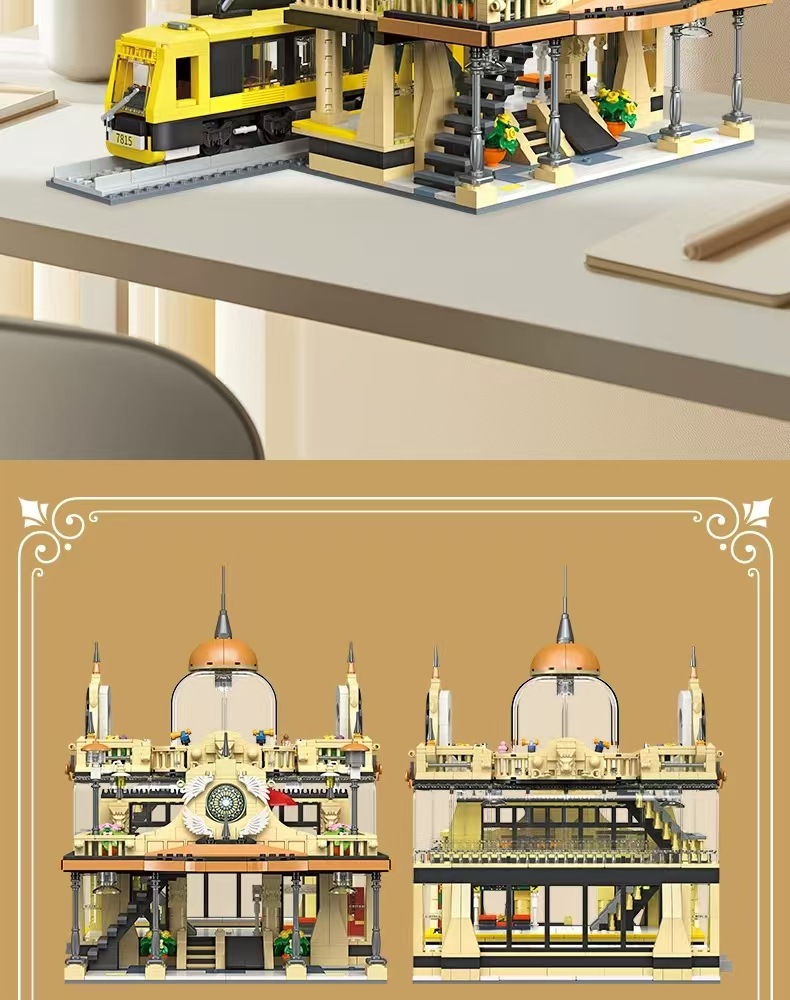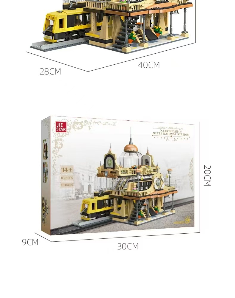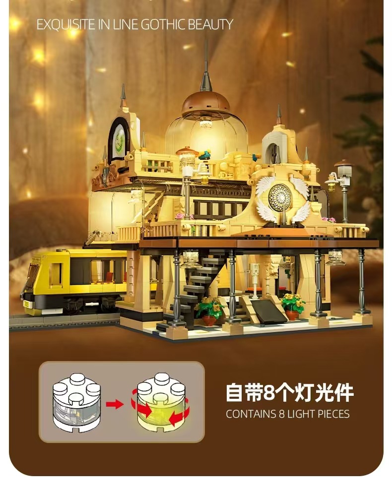 Jiexing 89136 ストリートビューシリーズヨーロッパスタイルの駅組み立て DIY 微粒子ビルディングブロックモデルライト付き