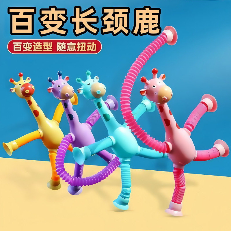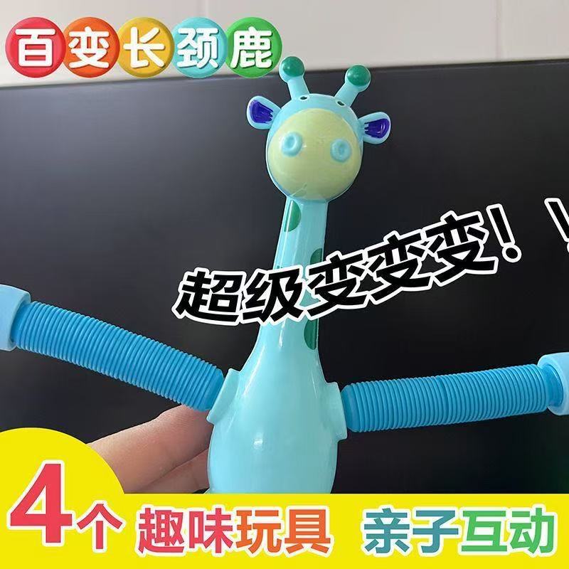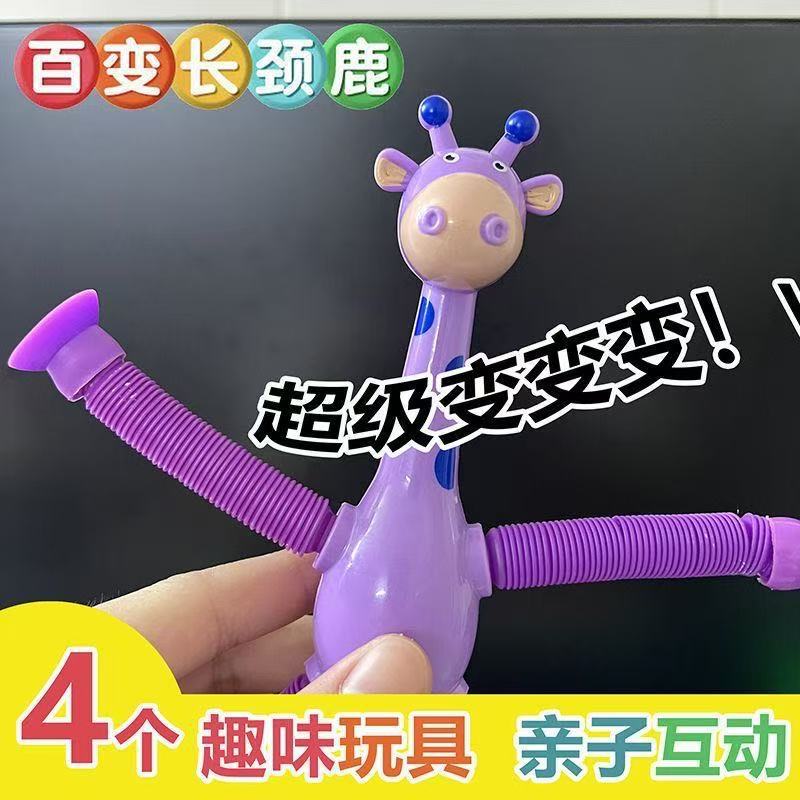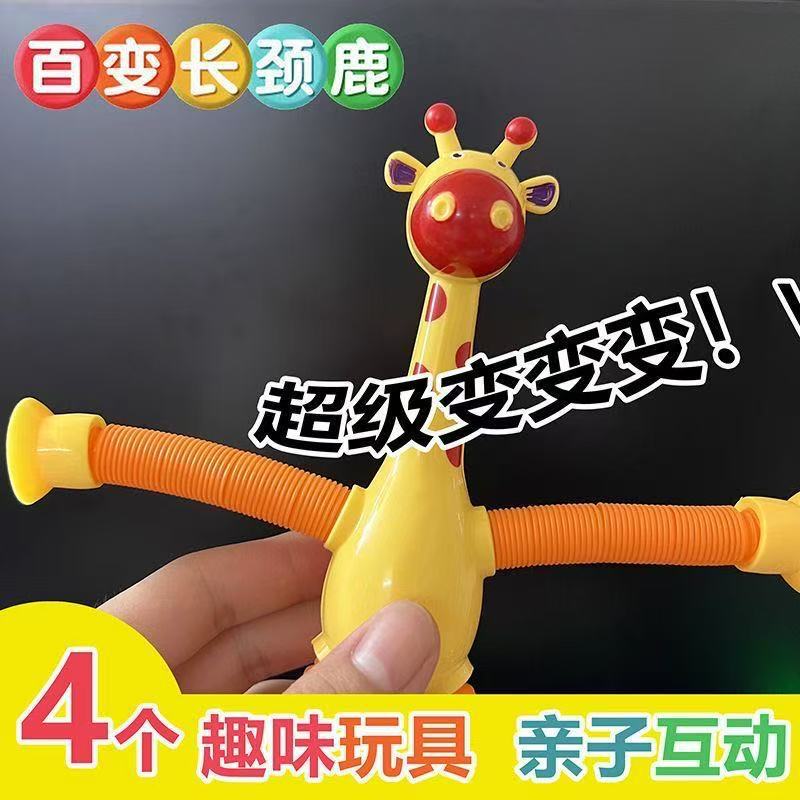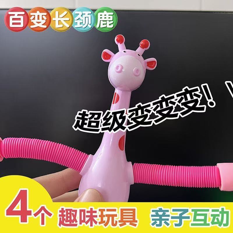 吸盘长颈鹿百变卡通伸缩儿童宝宝益智亲子互动拉伸管解压玩具批发