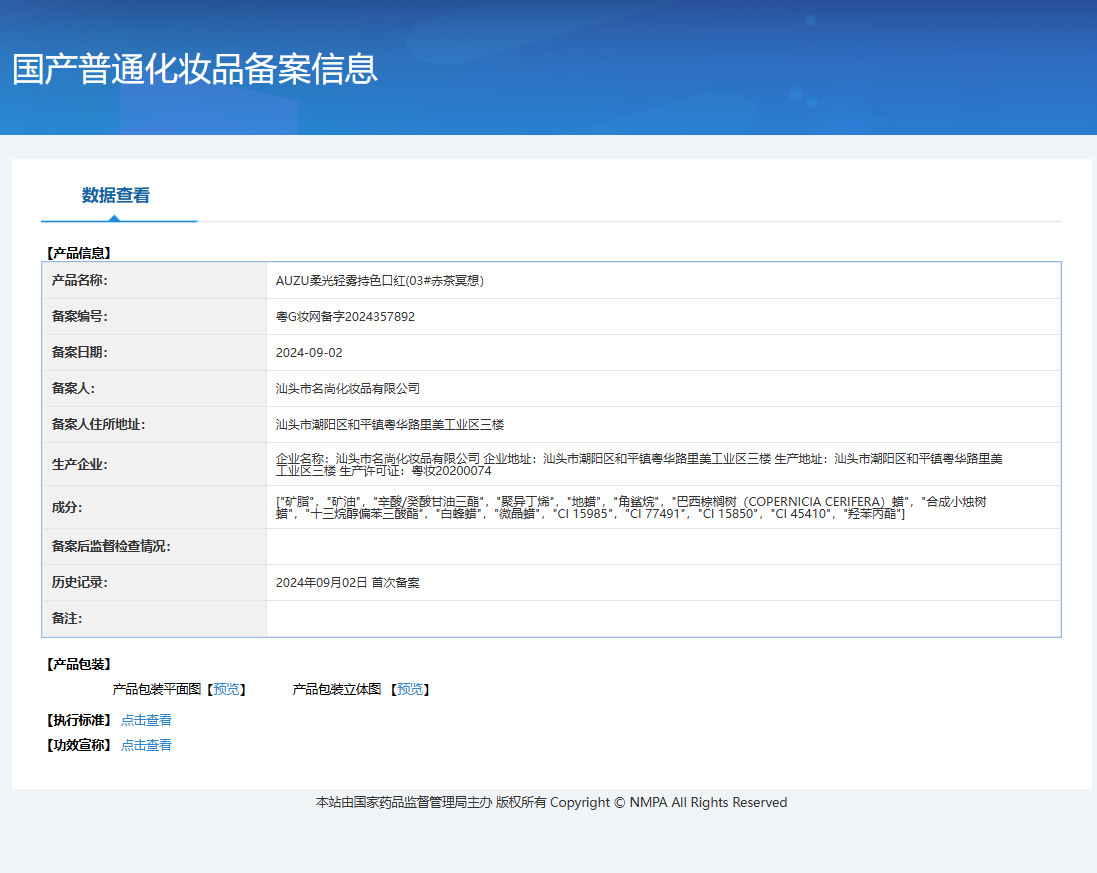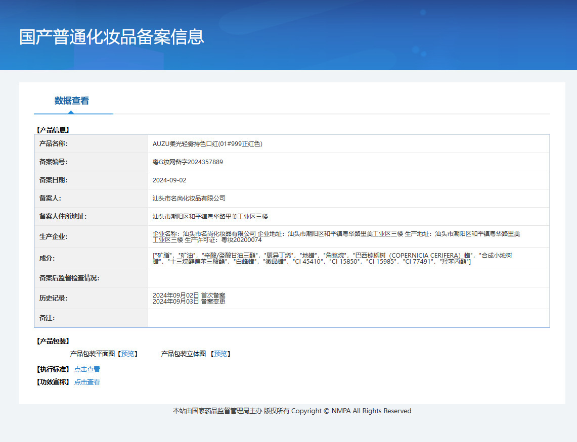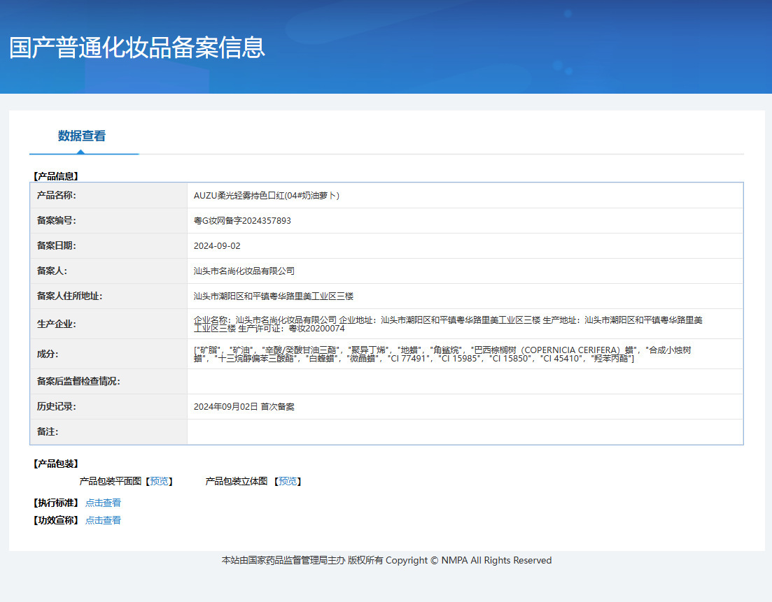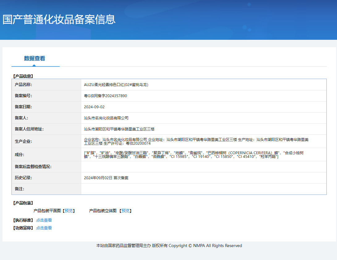 非特殊化粧品登録証番号 広東Gメイクアップネットワーク準備番号 2024357889