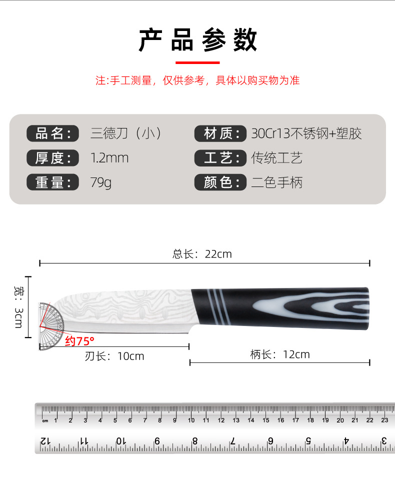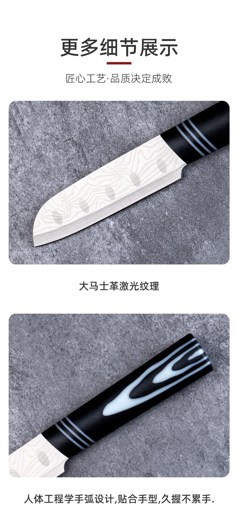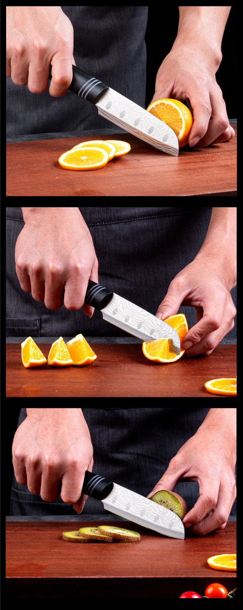 商品番号 黒と白のハンドルが付いた小さな三徳ナイフ - パターン スタイル