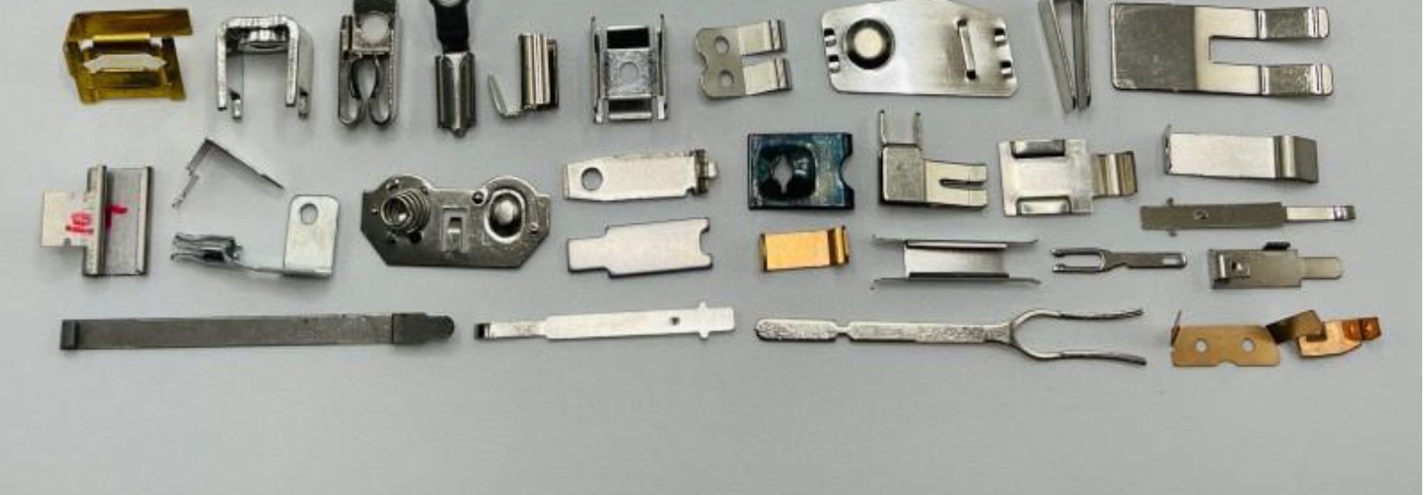 生産歩数計電池バネ片正負極接触片銅片連結部品精密金物プレス