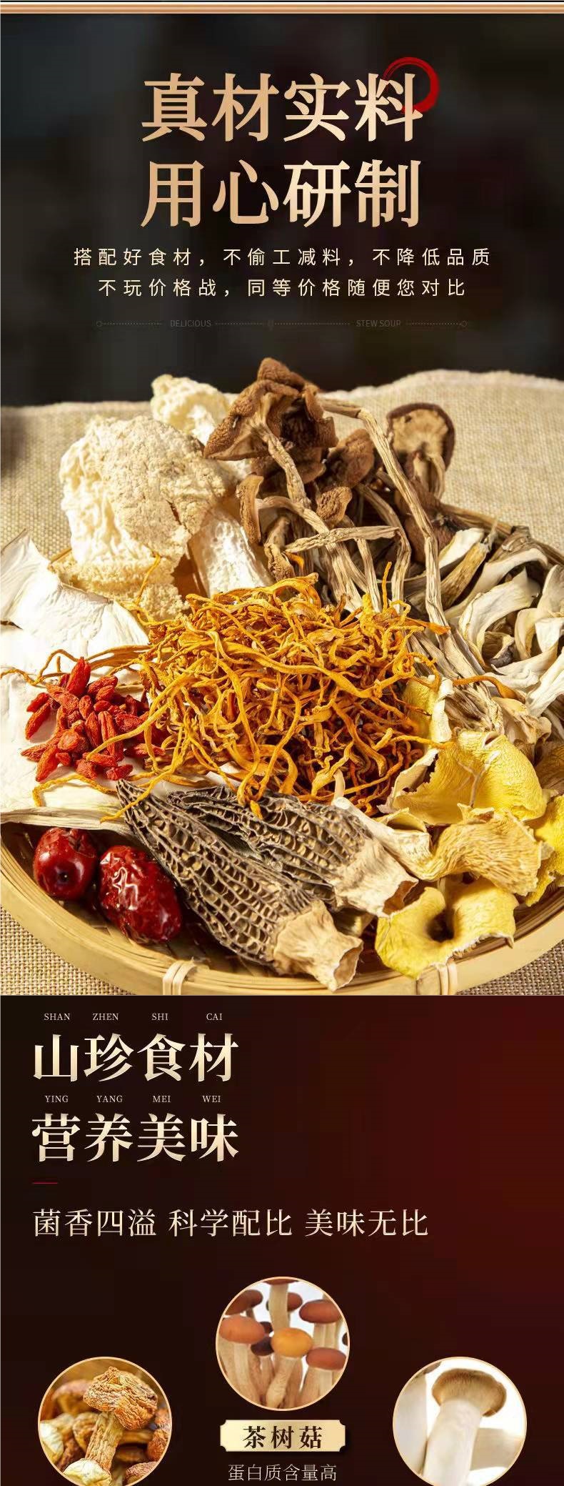 七色の菌のスープは雲南の特産の羊の腹の菌の鶏の油の菌の虫の草花の竹のアヤメの11種類の原料を包んで冬に栄養を補給します。