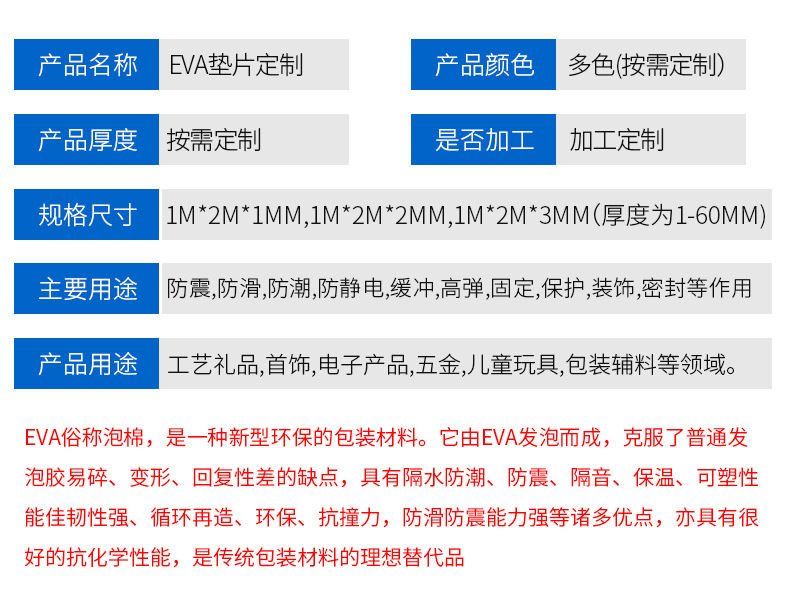 EVA発泡綿高密度防振スポンジ1-50mm厚免震防音スポンジ電子製品内張り卸売り