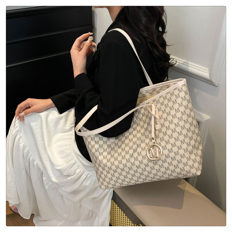 シンプル おしゃれ 大容量 2025 レトロ 夏新作 通勤 義母 ポータブル ショルダー トートバッグ 2点セット