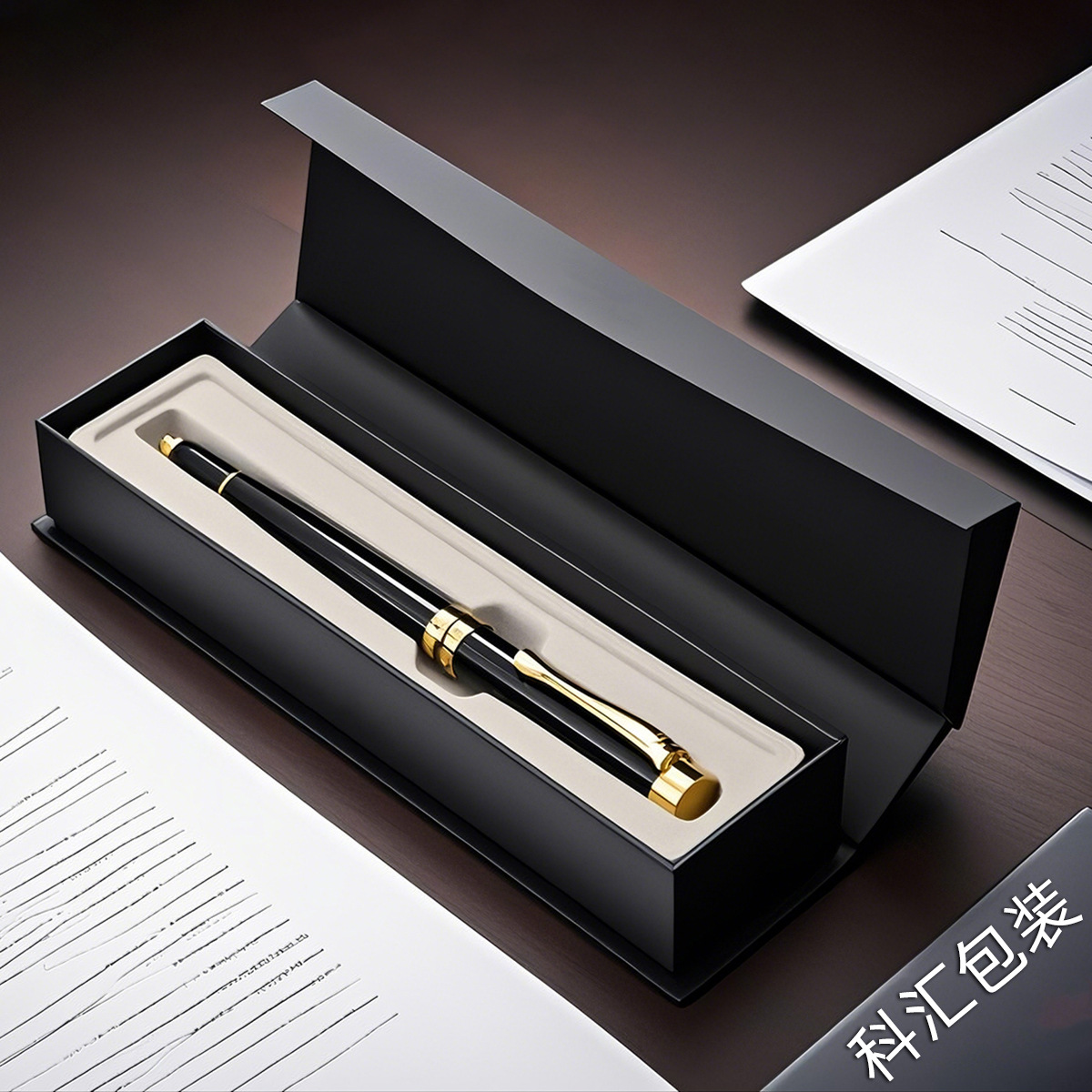 紙ギフトペンボックス既製ペンボックス天蓋フラットマットブラックペンボックス卸売印刷ロゴ
