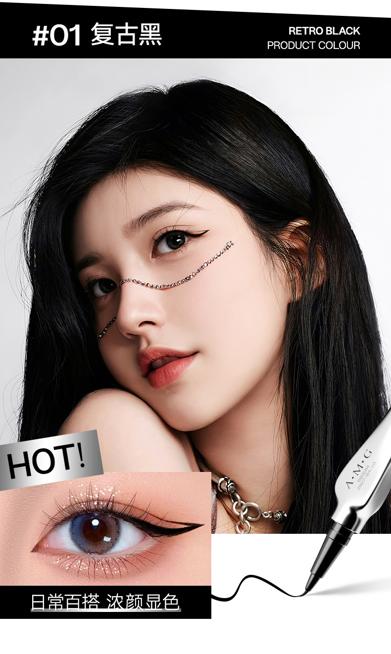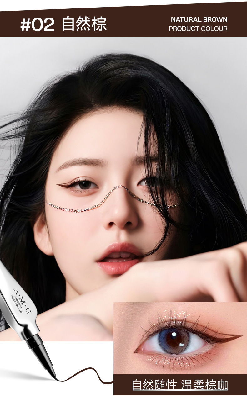 A.M.G ポジショニングリキッドアイライナーペン、滑らかで速乾性のアイライナー、ウォータープルーフ、にじまない、長持ちするカラーリングブラウンアイライナー