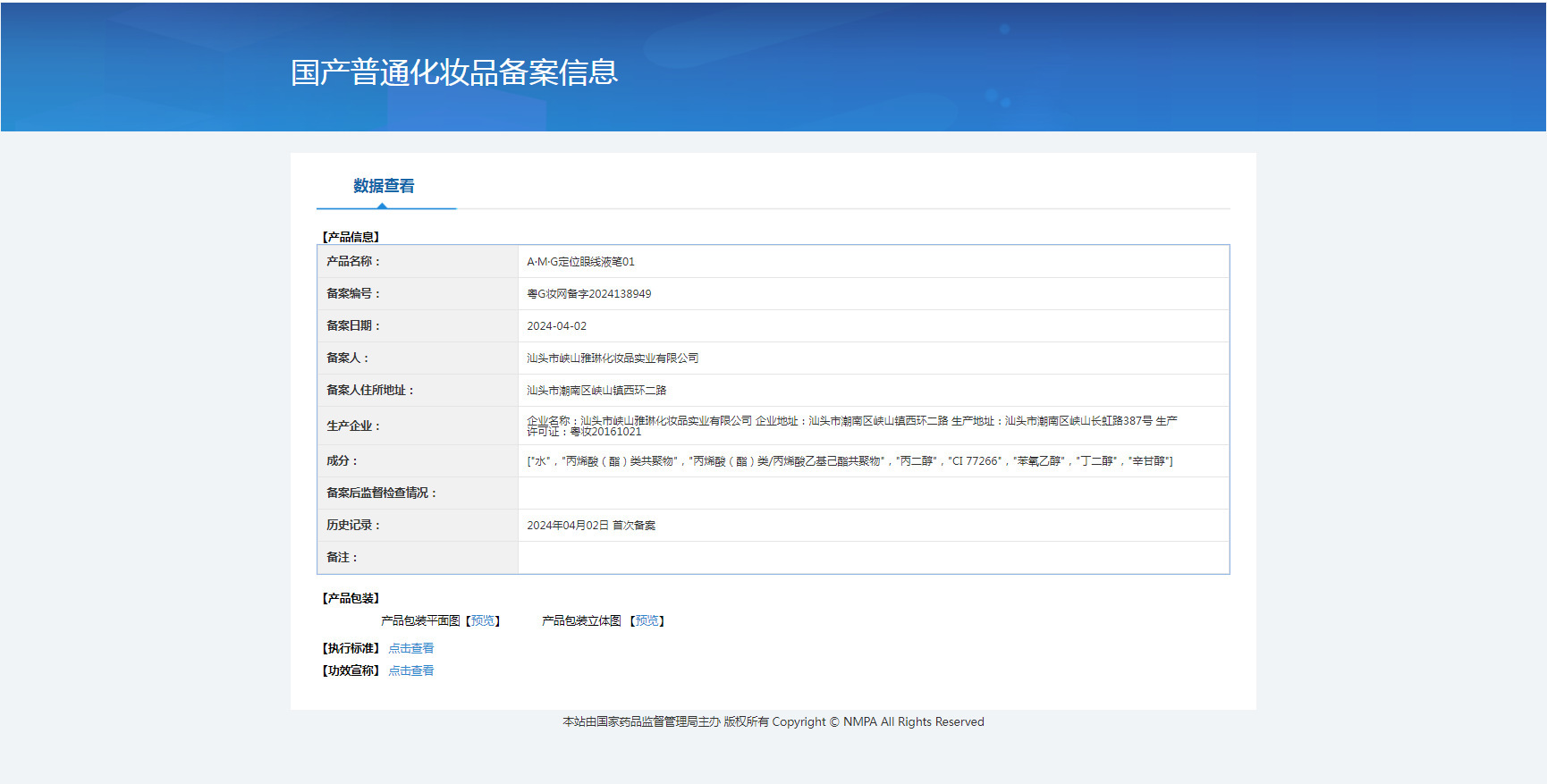 非特殊化粧品登録証番号 広東Gメイクアップネットワーク準備番号 2024138949