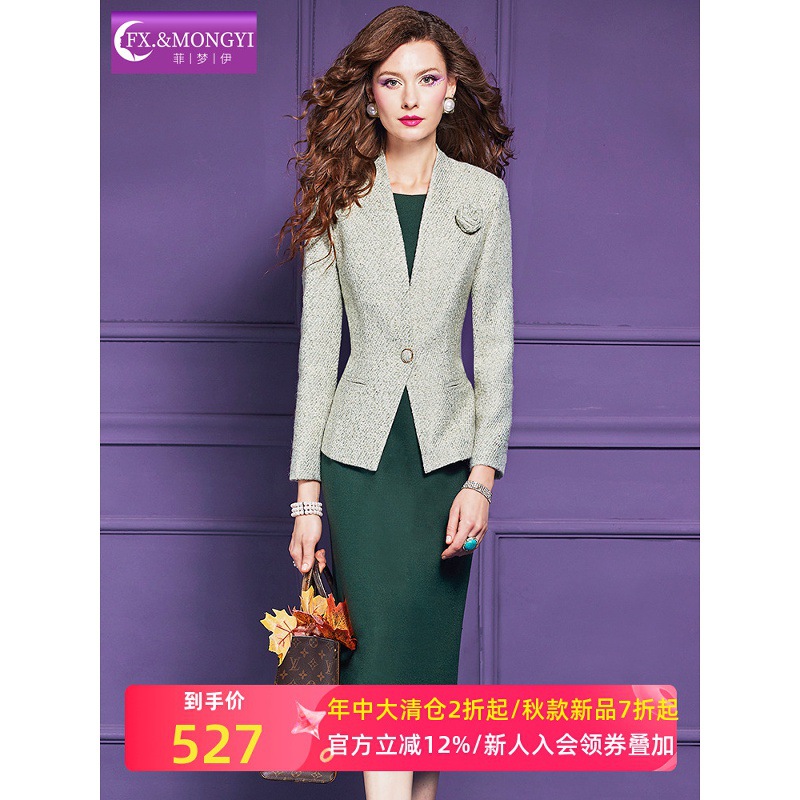 菲梦伊含羊毛西装套装裙女冬季复古优雅大方气质无袖连衣裙短外套