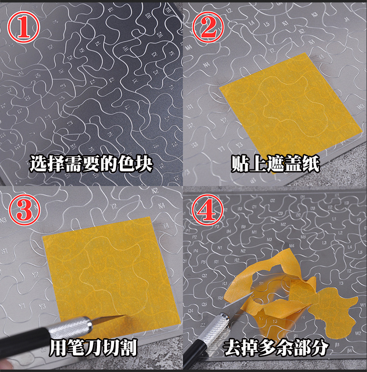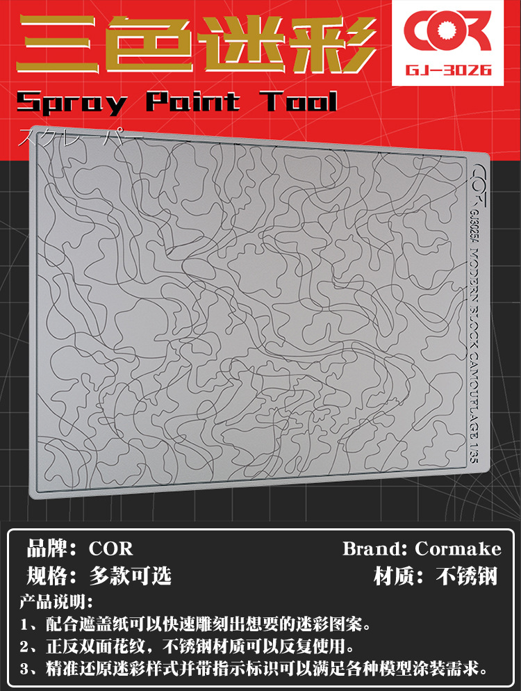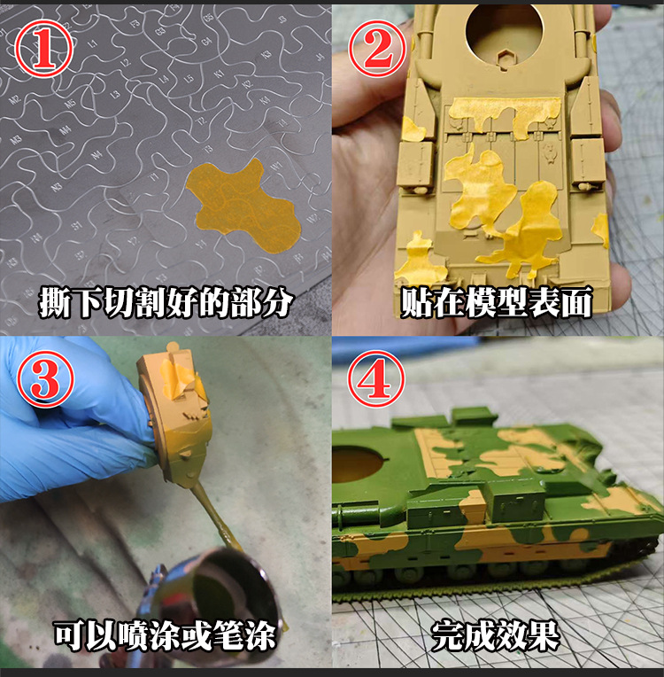 カバーペーパーカッティングテンプレート 3 色迷彩配色両面ロゴマスキングテープカッティングマット 1:72