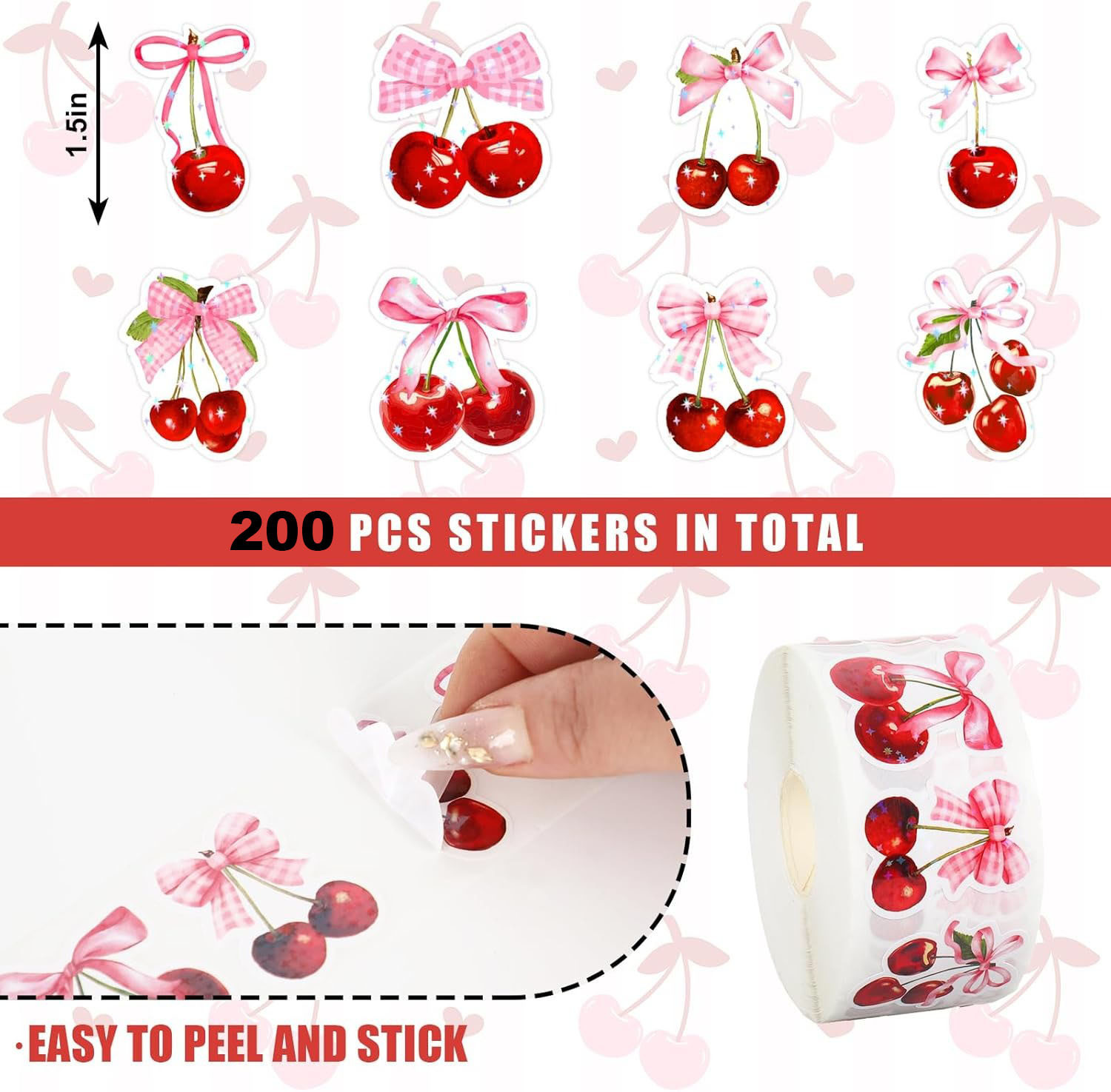 1.5インチパッケージさくらんぼ果物装飾感謝シール手作りの祝日装飾シール