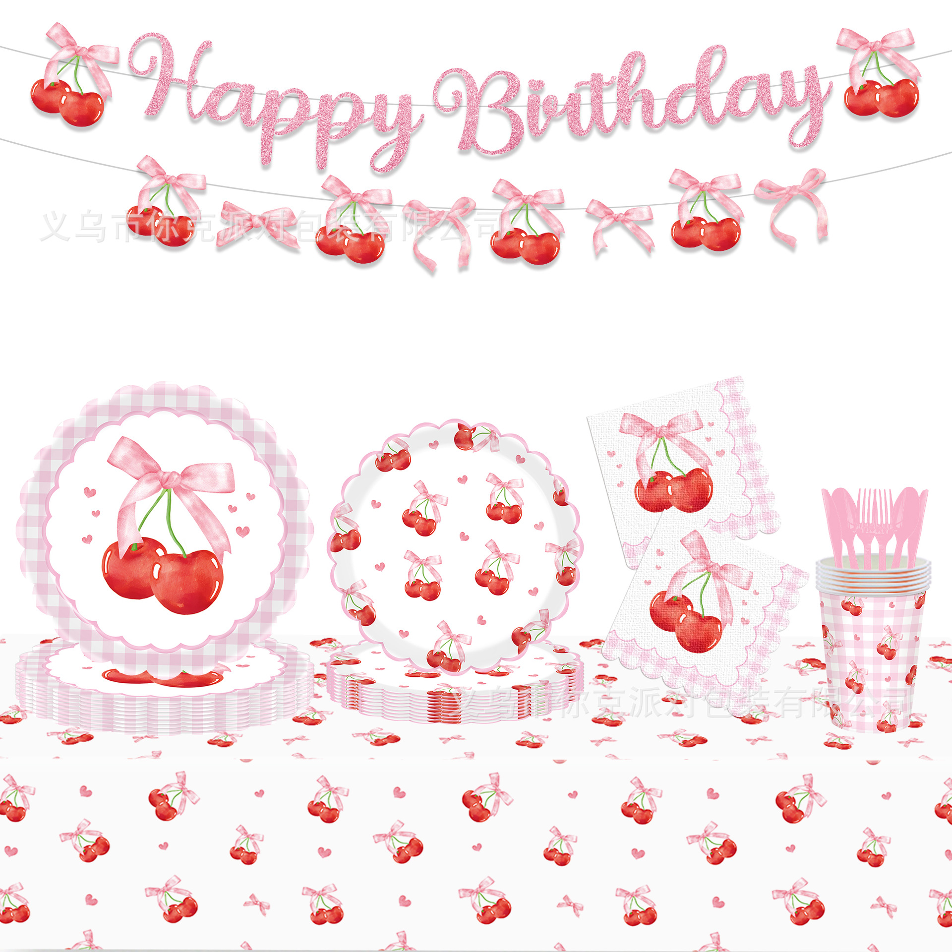 新品ピンク蝶格子さくらんぼモチーフパーティーティッシュ子供诞生日使い舍てティッシュ装饰用品