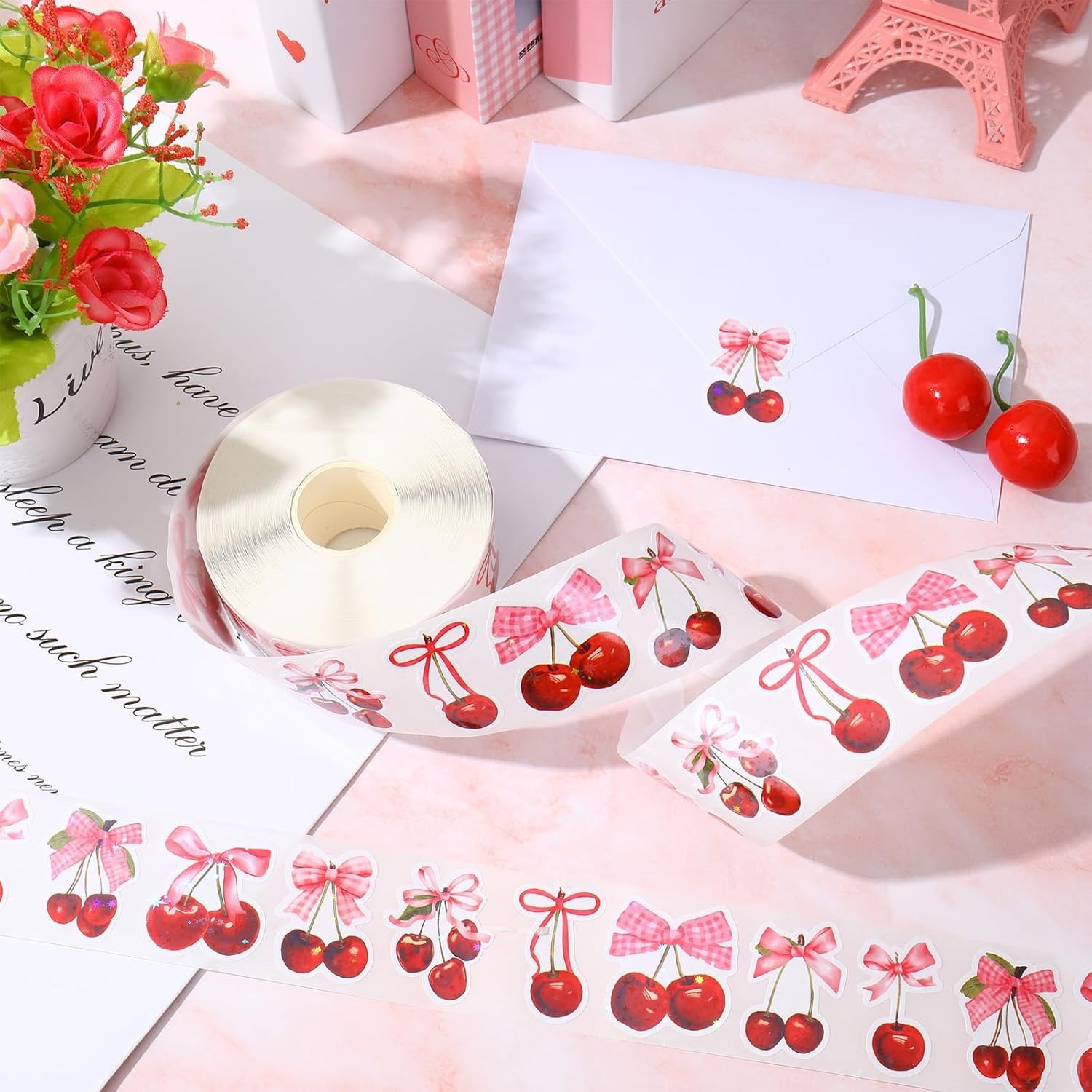 500枚/巻きピンク蝶結びシールかわいいプレゼントボックス祝福シール装飾素材シール