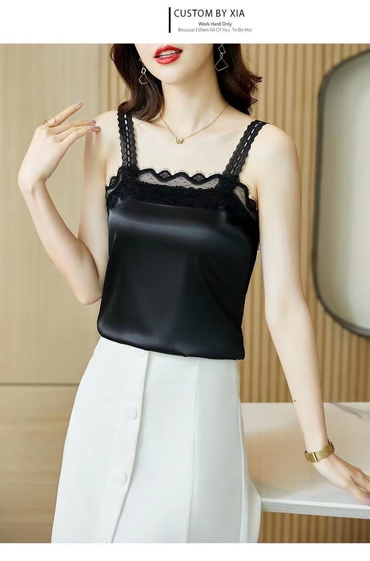 女性用フレンチキャミソール、夏の新しいファッションキャミソール、ワンラインカラー、美しいバック、女性用セクシートップ