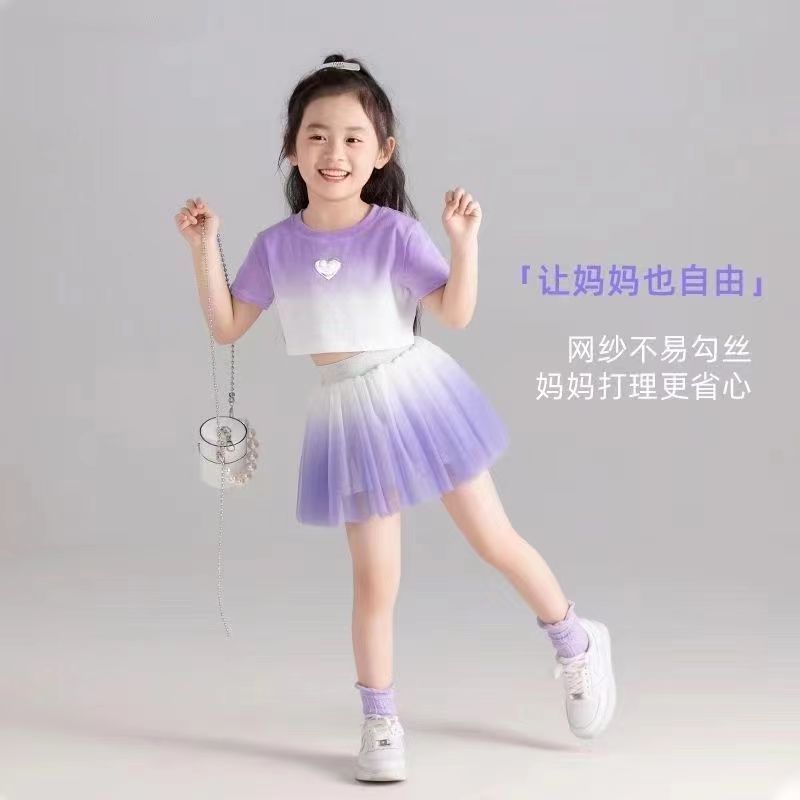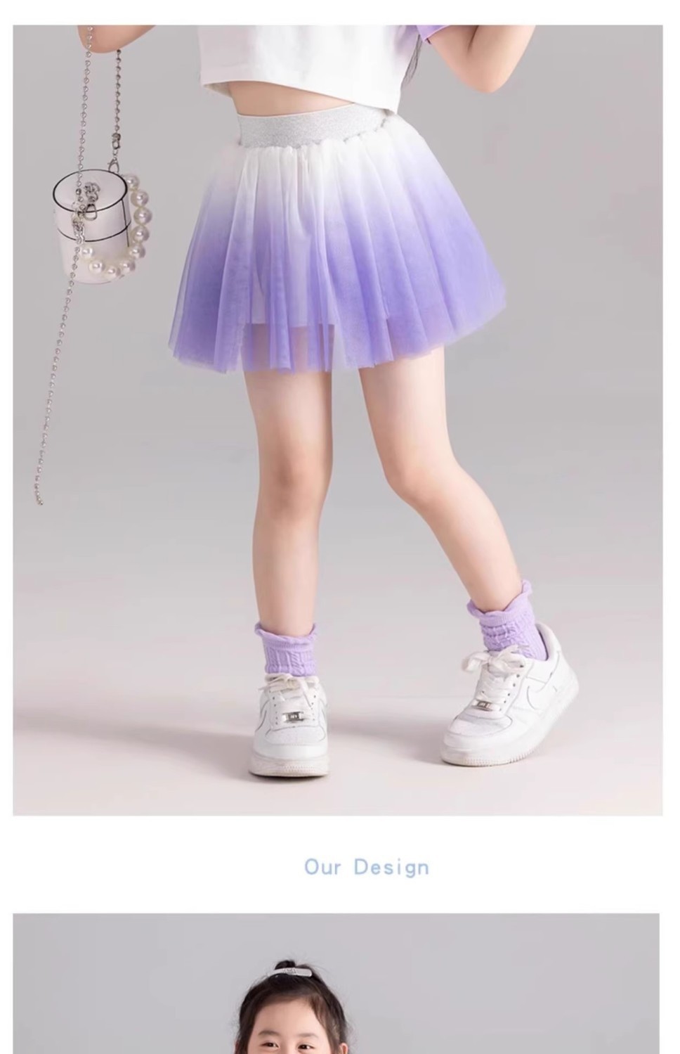 パープルグラデーションTシャツ155スタイル,パープル 1 メッシュ スカート 155 スタイル,パープル2 155 Tシャツ+スカートセット