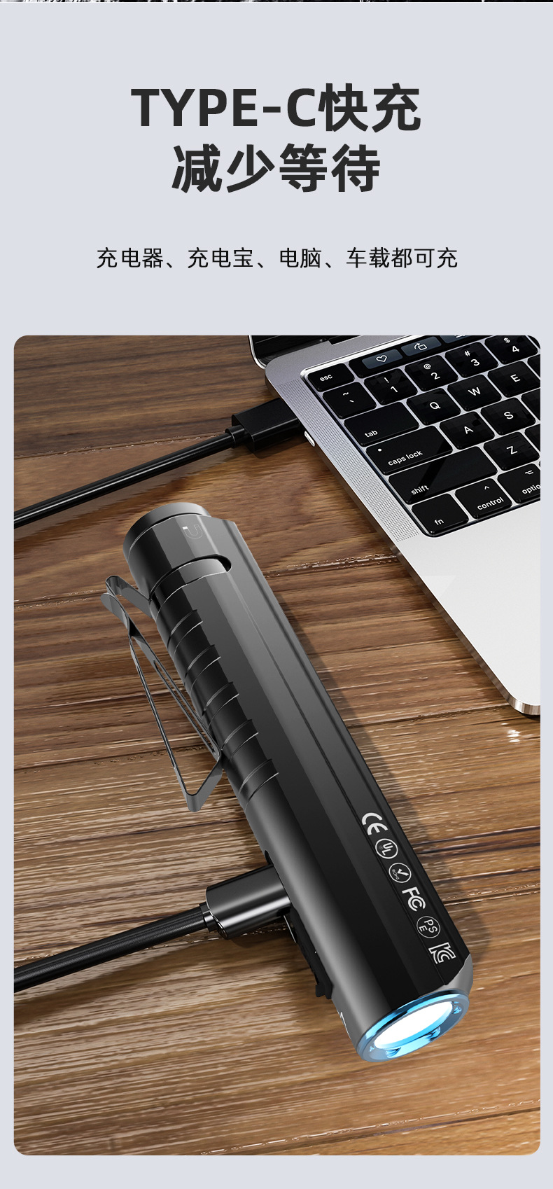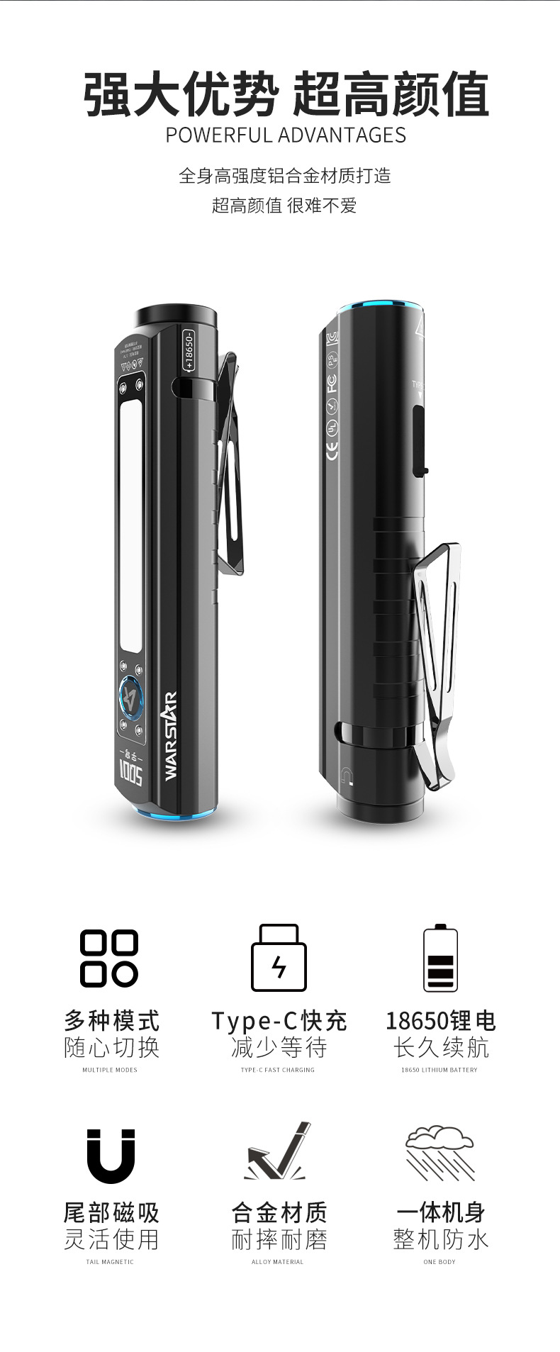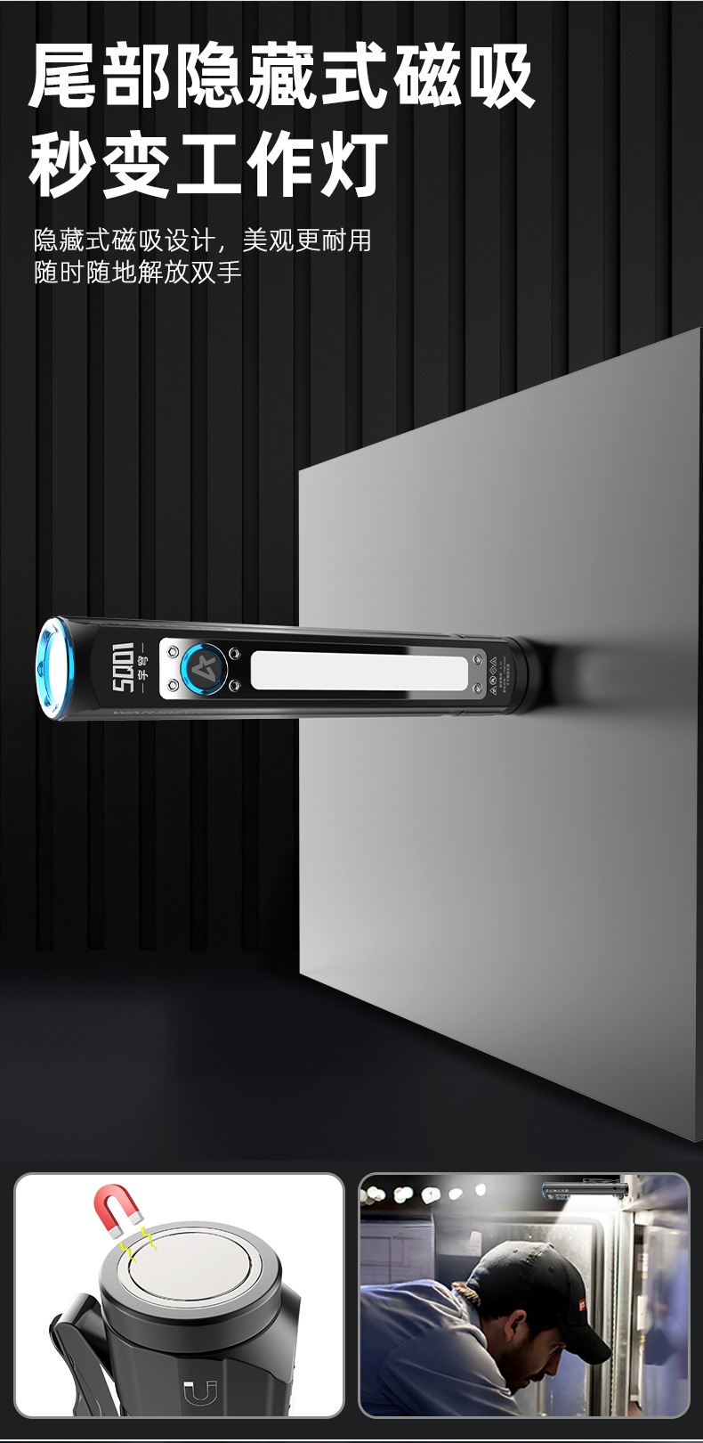 超亮强光DEC便携手电筒户外远射可充电工作灯尾部磁吸手握式照明