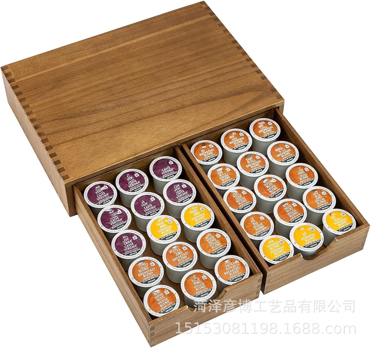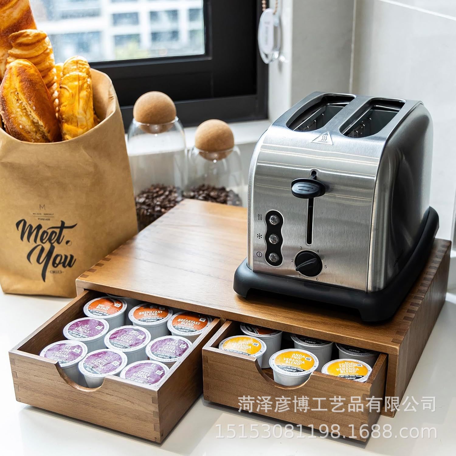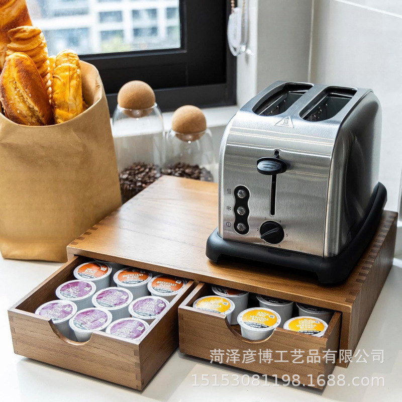 木製コーヒーカプセル引き出し収納ラックコーヒーマシンベーススタンド家庭用コンパートメントティーセットティーバッグ収納ラック