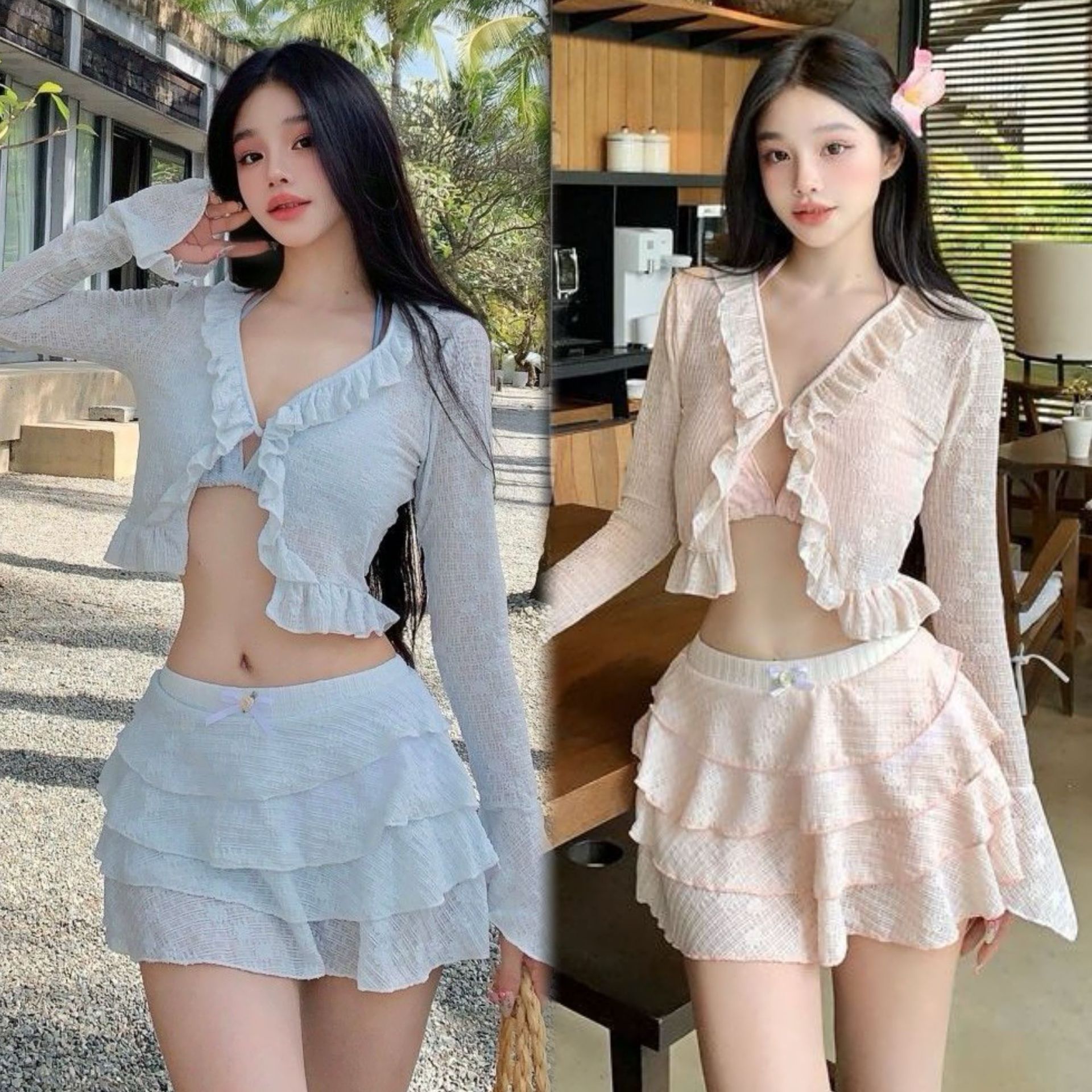 25新型高颜値ビキニ四点セット超仙純欲保守長袖日焼け止め休暇レース水着女