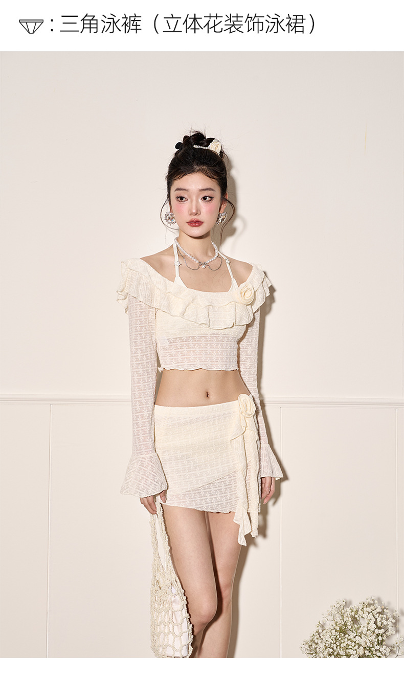 水中梦2625批发专用新款比基尼四件套分体裙式度假长袖温泉泳装