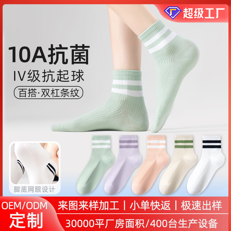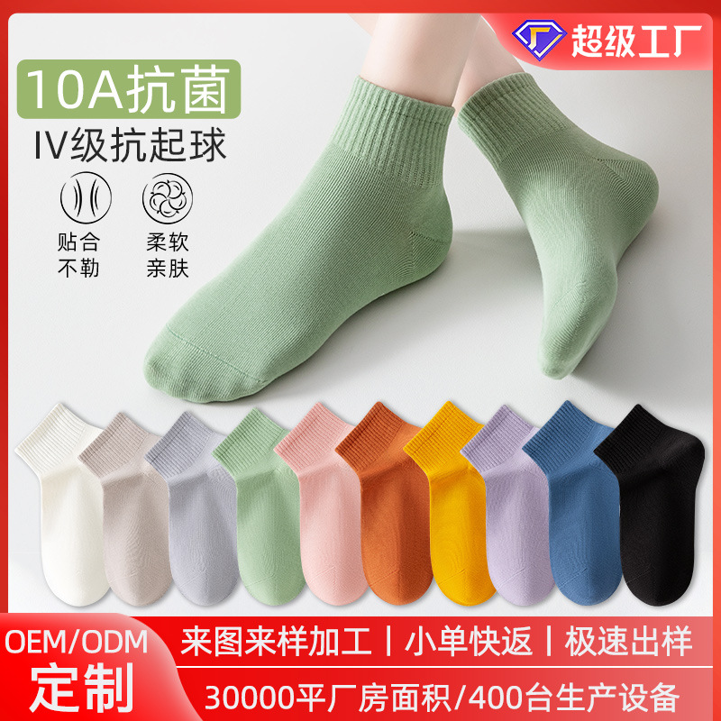 靴下の女性春夏防臭中筒靴下吸汗通気性薄い純色綿靴下カジュアル夏抗菌消臭女性靴下