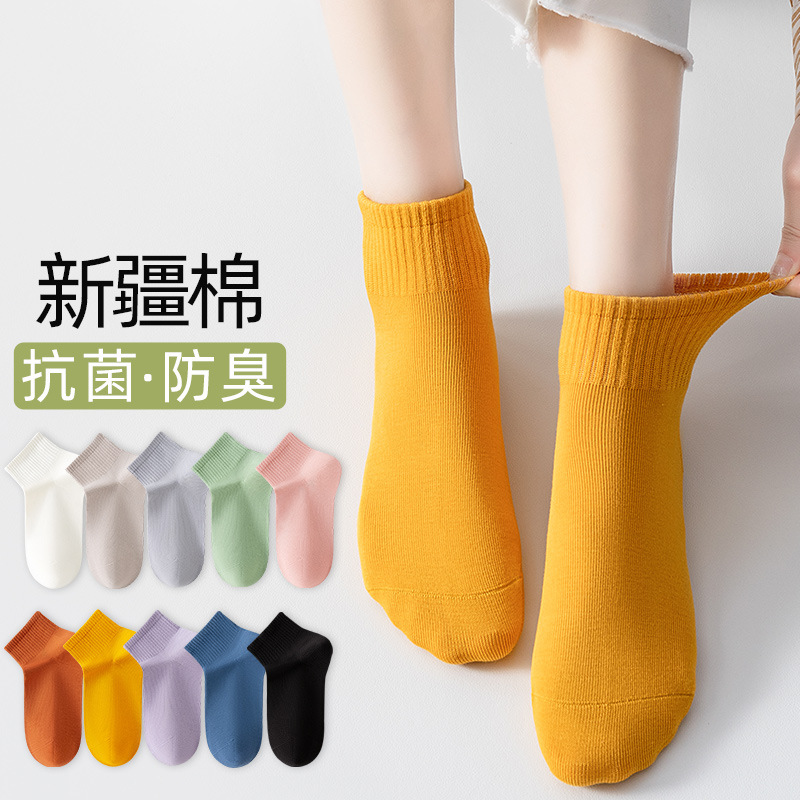 女性用靴下 春夏消臭ミッドカーフソックス 吸汗通気性 薄手無地綿靴下 カジュアル夏用抗菌防臭女性靴下