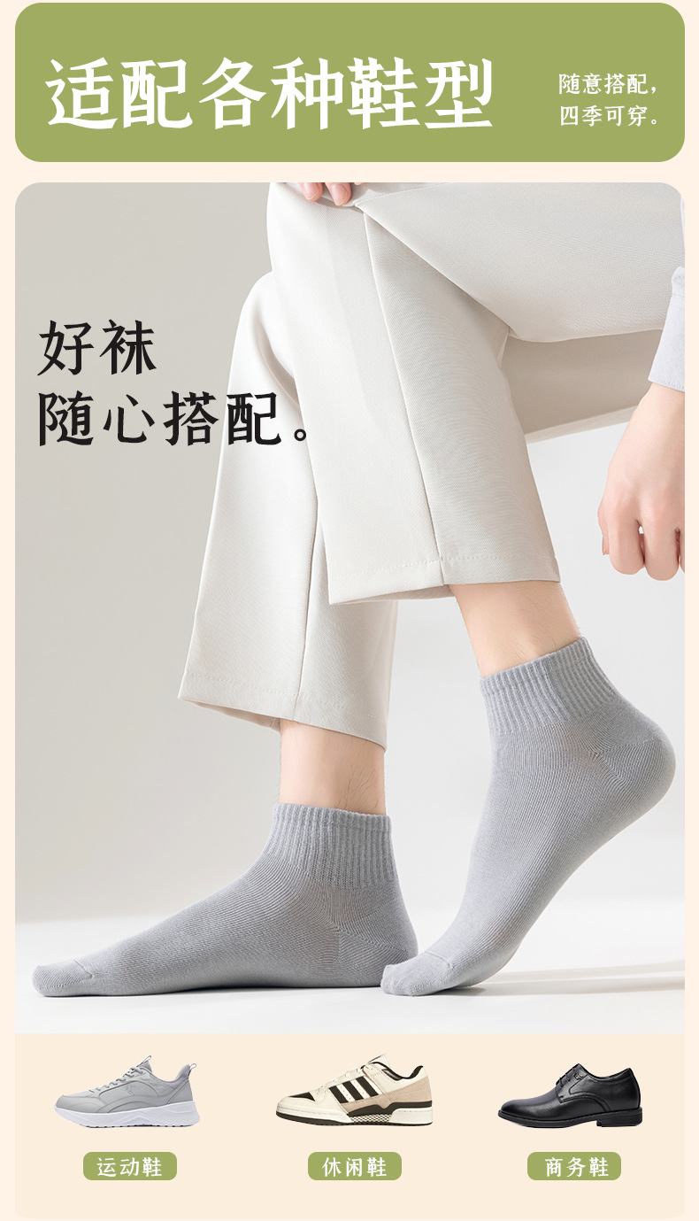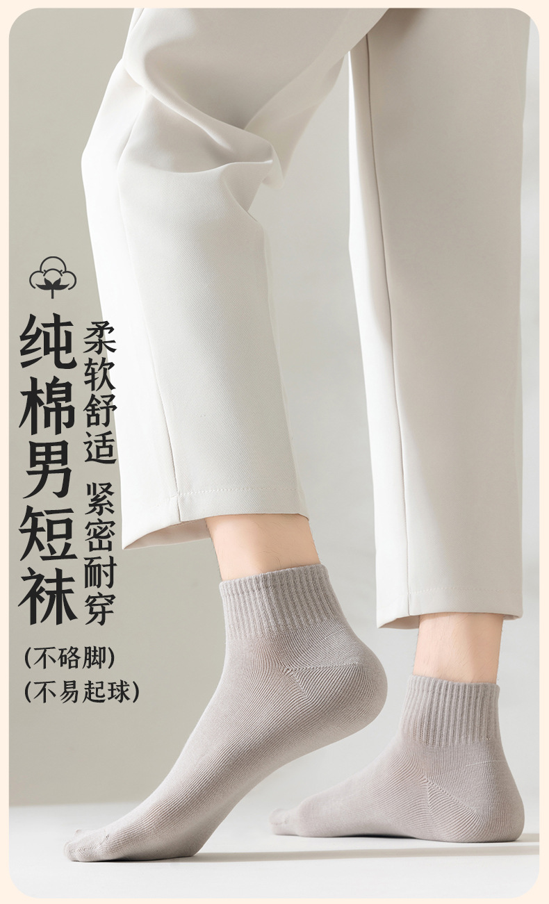 靴下男性春と秋のソックス純綿靴下抗菌男性綿靴下ショートソックススポーツ靴下白黒春夏通気性男性靴下