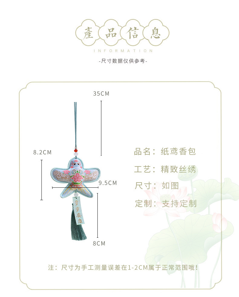 従業員向けのクリエイティブなギフトサシェ、タッセル付きの燕と凧の小さなサシェ、カスタマイズ可能なギフトボックス入りのお土産