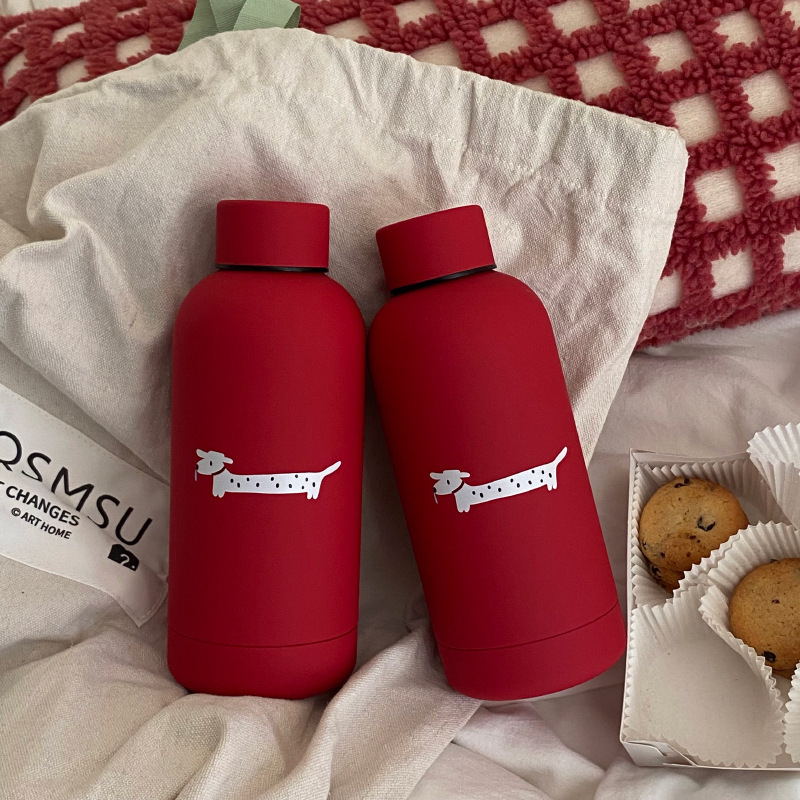 新年のクリスマスの高級感の正の赤いつや消しの子犬のステンレスの保温カップのかわいい斑点は犬の随行の杯を修理します。