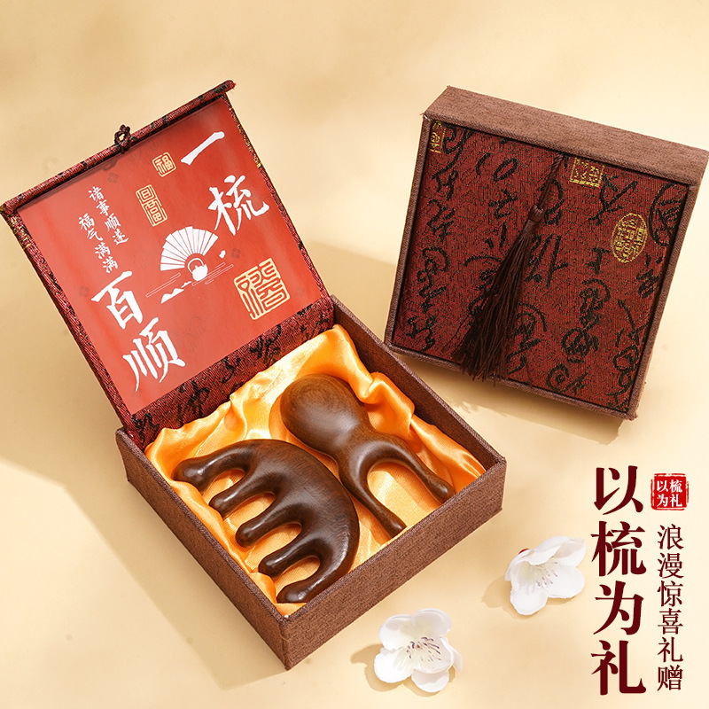 中国风礼物送老师实用檀木梳子高档礼盒套装生日礼物女生养生伴手