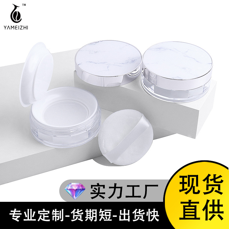现货花西大理石散粉盒包材隔层弹力网分装盒银边带粉扑化妆品空盒