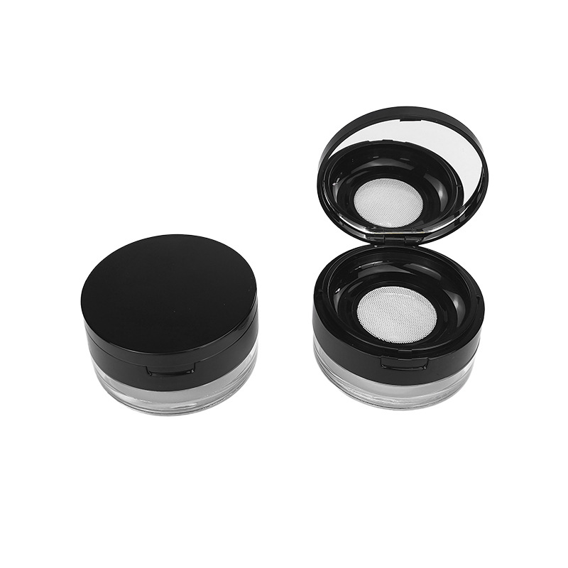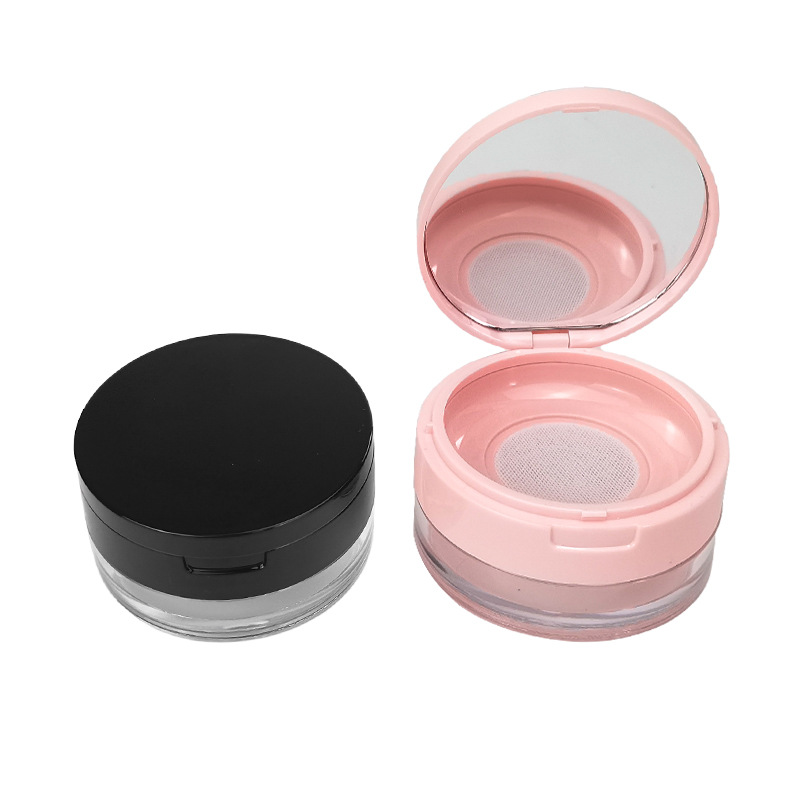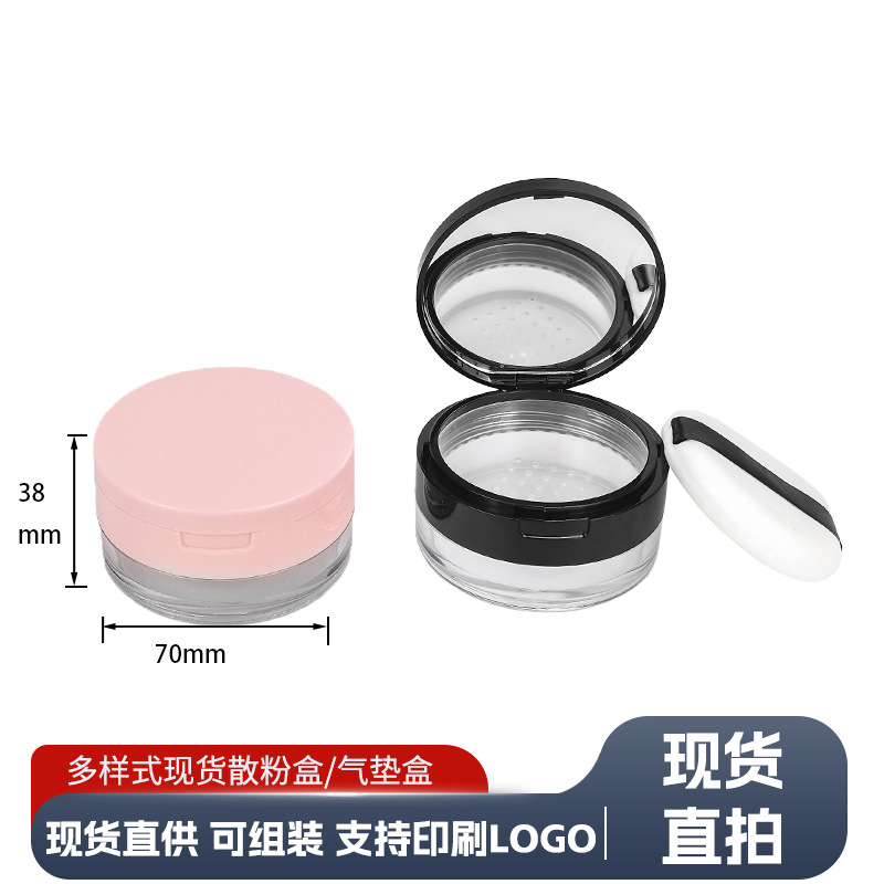 现货20g中格散粉盒翻盖带镜塑料网格粉末定妆蜜粉分装空盒可定 制