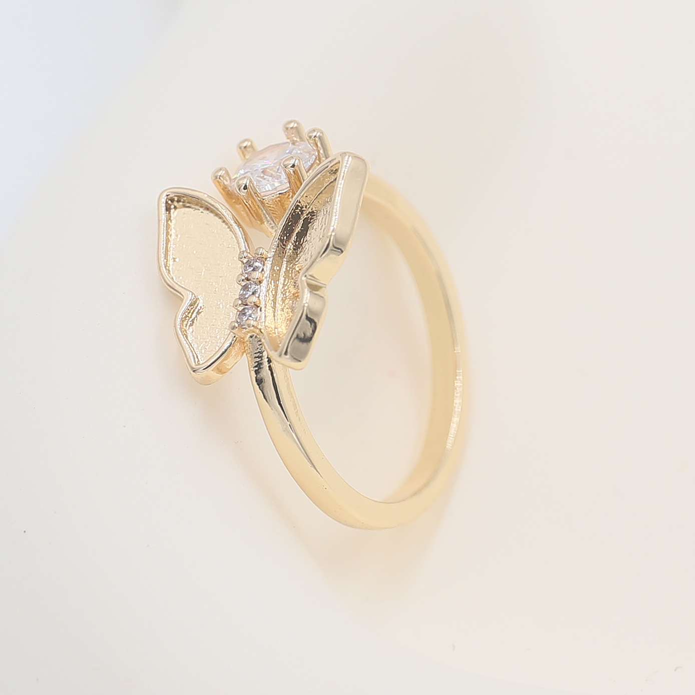 亦辰饰品仿点翠螺钿胎底铜镀金蝴蝶镶嵌锆石开口戒指