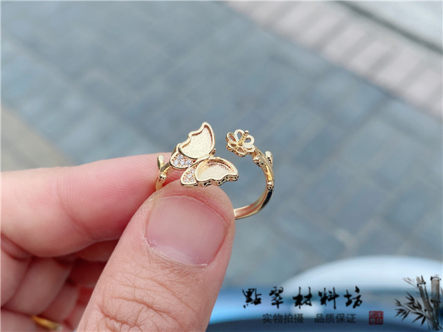 青荷DIY饰品发簪配件镀18K真翠底胎蝴蝶戒指可调节