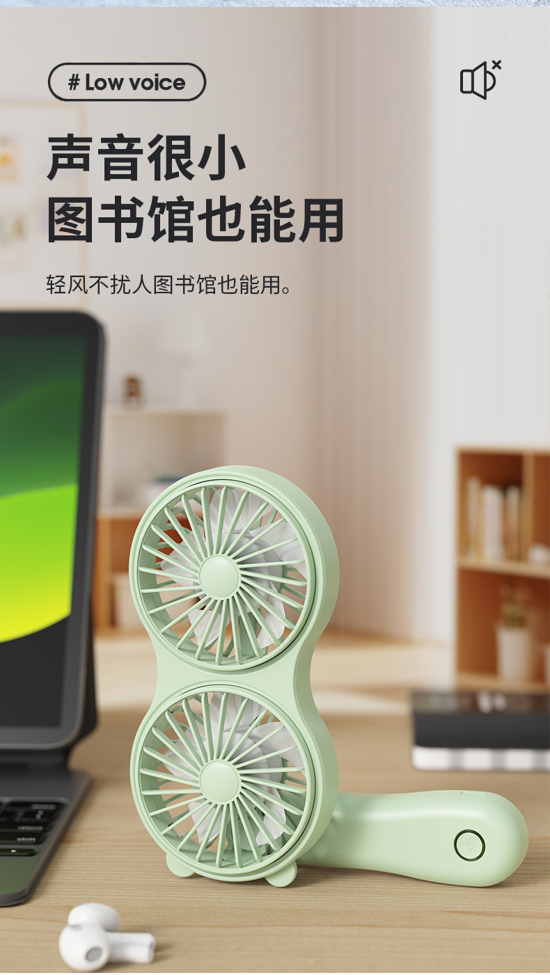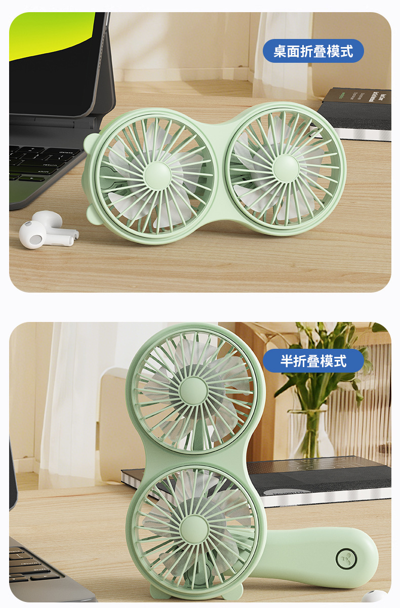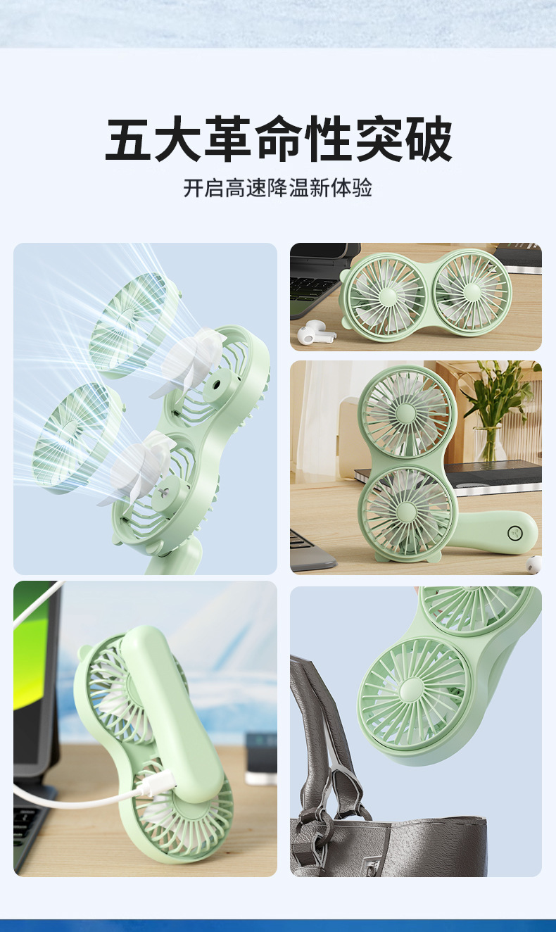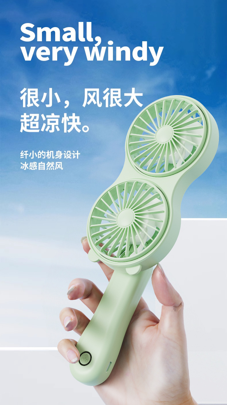 クロスボーダーハンドヘルド双頭かわいい小型ファン USB 充電ポータブルミニオフィス旅行学生デスクトップ