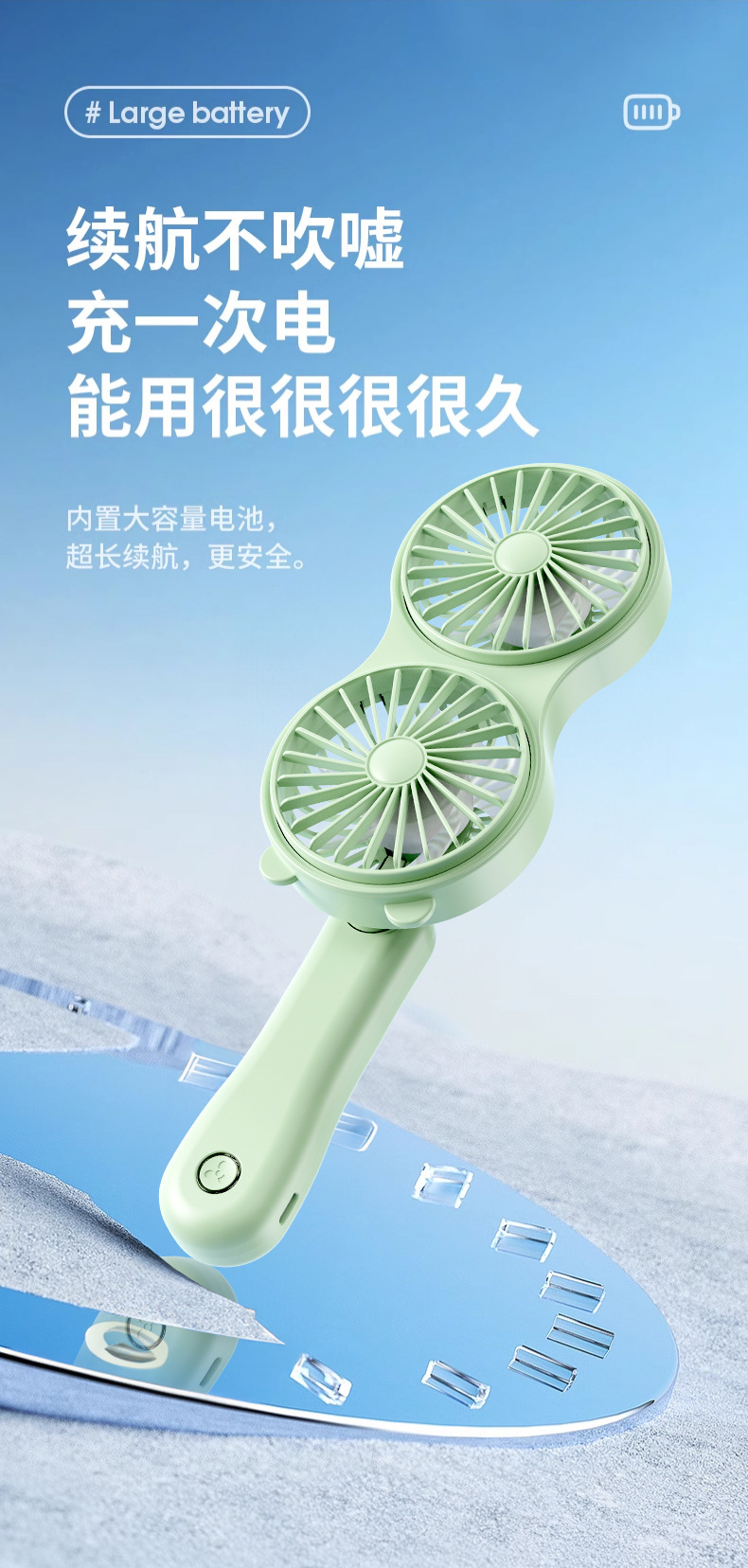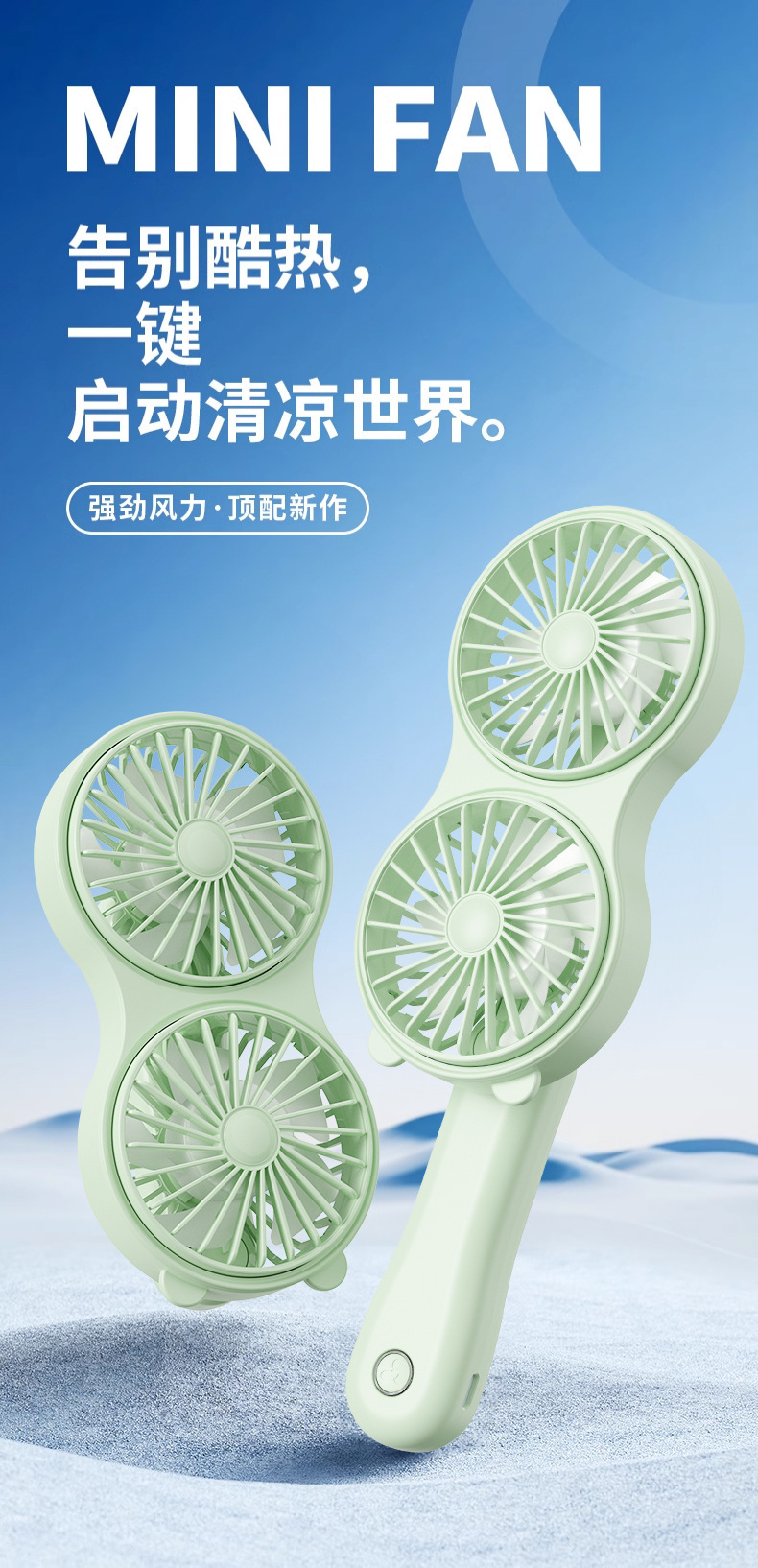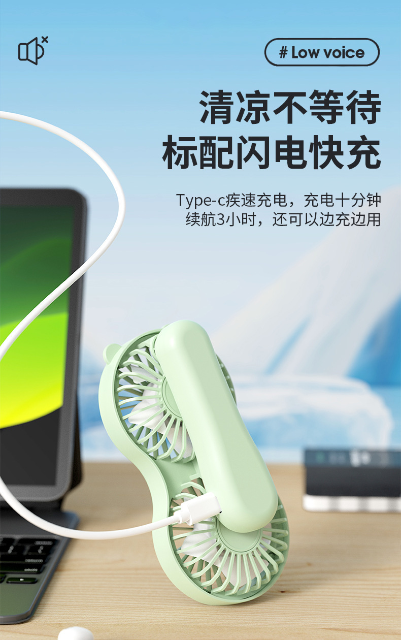 クロスボーダーハンドヘルド双頭かわいい小型ファン USB 充電ポータブルミニオフィス旅行学生デスクトップ