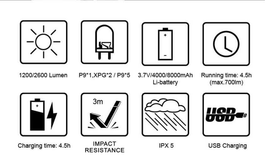 NEWBOLER 屋外自転車ライト 8000-10000 mAh 大容量プラスリフティングブラケットヘッドライト
