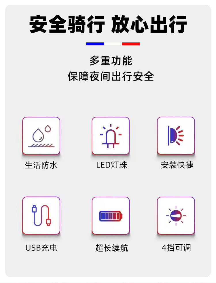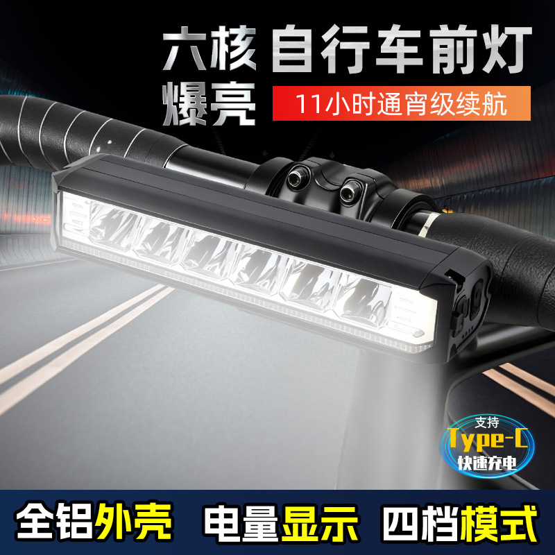 新款户外骑行前灯铝合金固定架高亮强光骑行灯长续航防水自行车灯