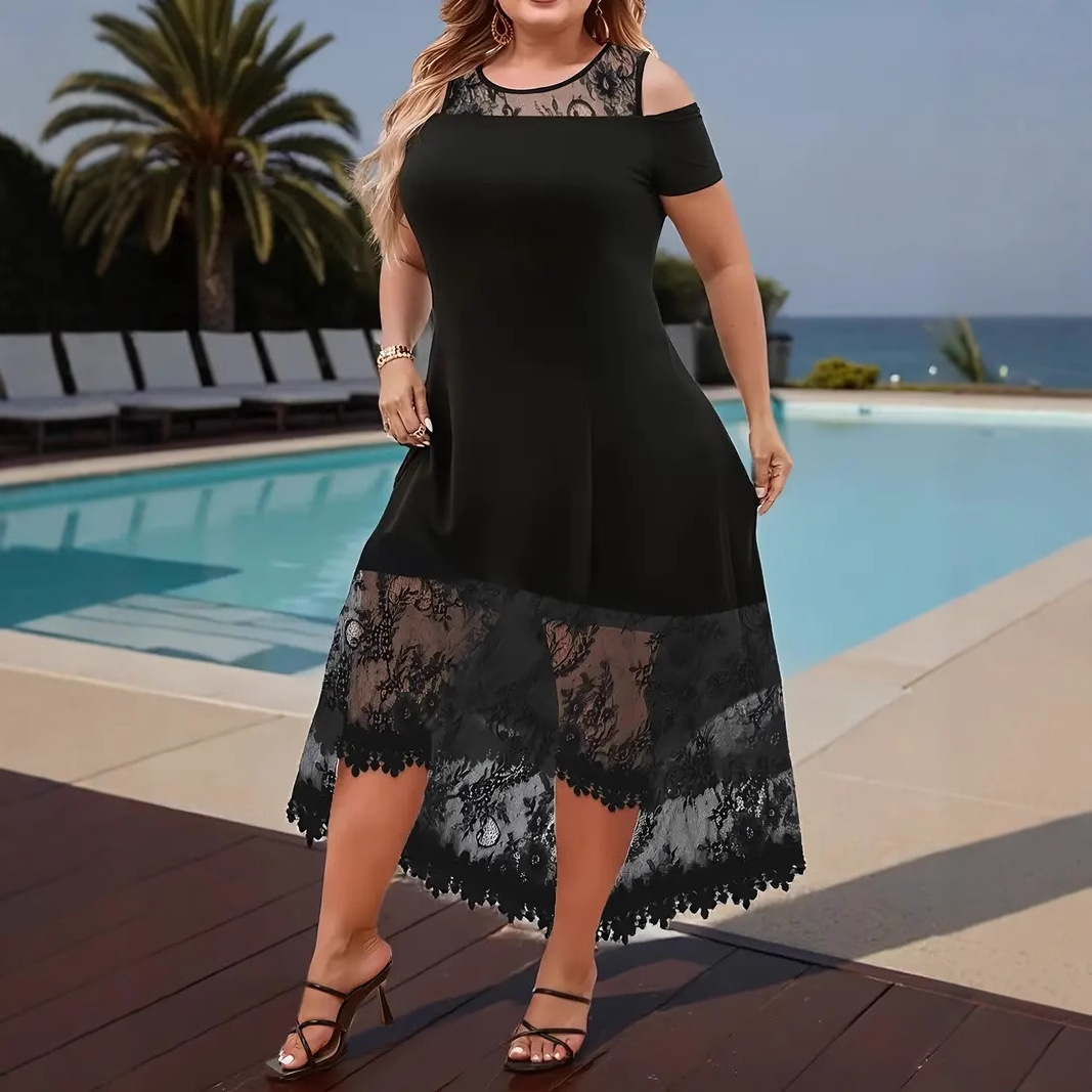 工場直販クロスボーダーヨーロッパとアメリカの無地胸巻きレースハイウエストボトム気質通勤ラウンドネック大きいサイズミドル丈