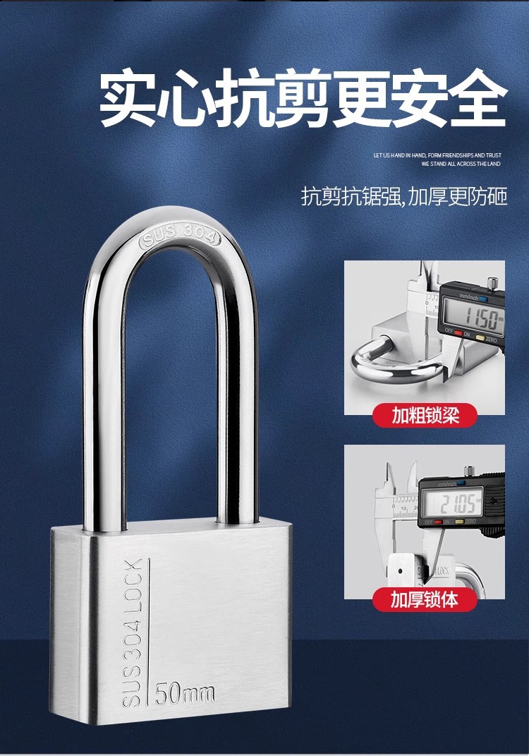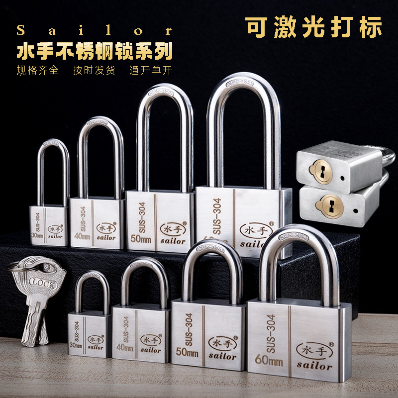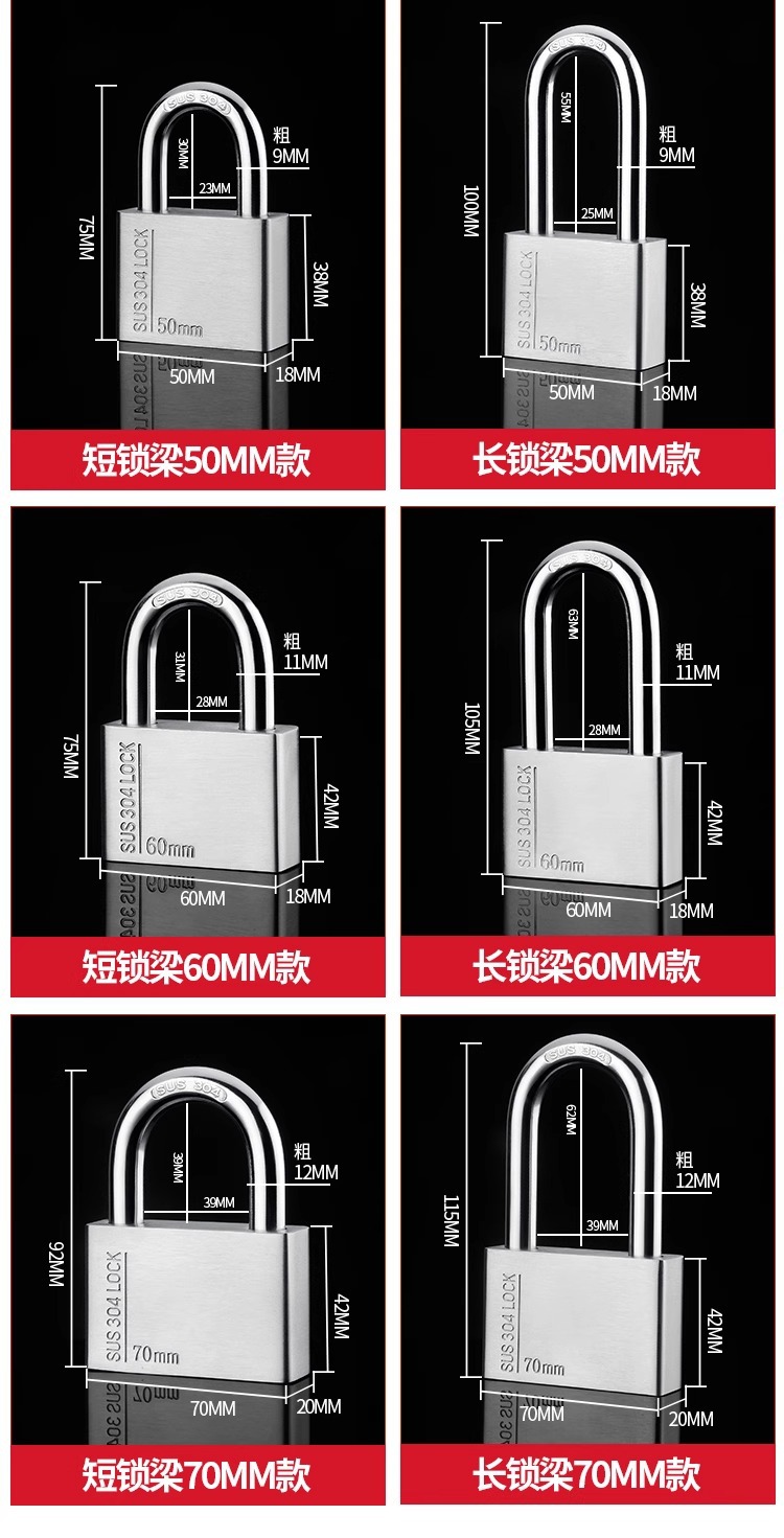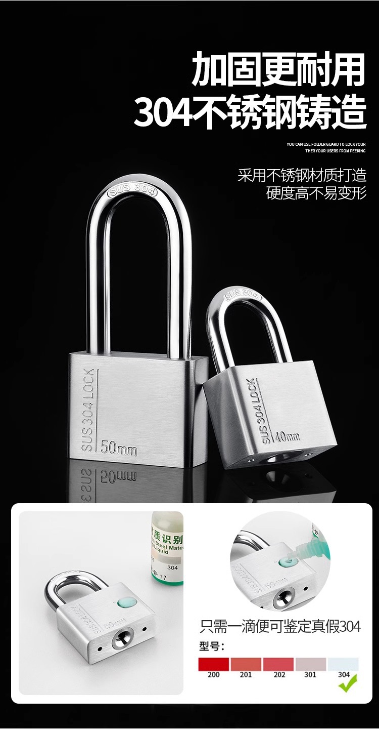 不锈钢304挂锁大门锁家用卧室锁学生宿舍柜子锁防水防锈户外锁